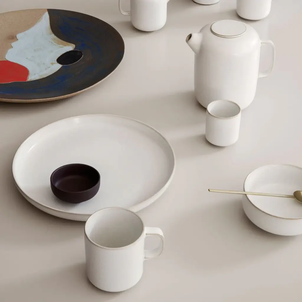 Rediscovering the magic of traditional manufacturing, the Sekki Mugs are made of cream-colored glazed clay with tiny grey speckles and a glorious surface. The simple shape lets the material with a remarkable feel make up the contemporary expression, while the elegant foot elevates the design, adding a floating expression to this mug for your favorite beverage.