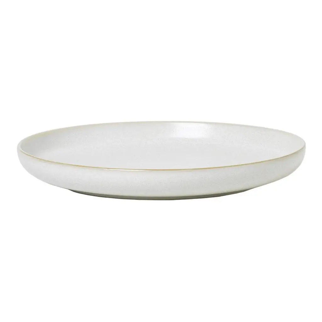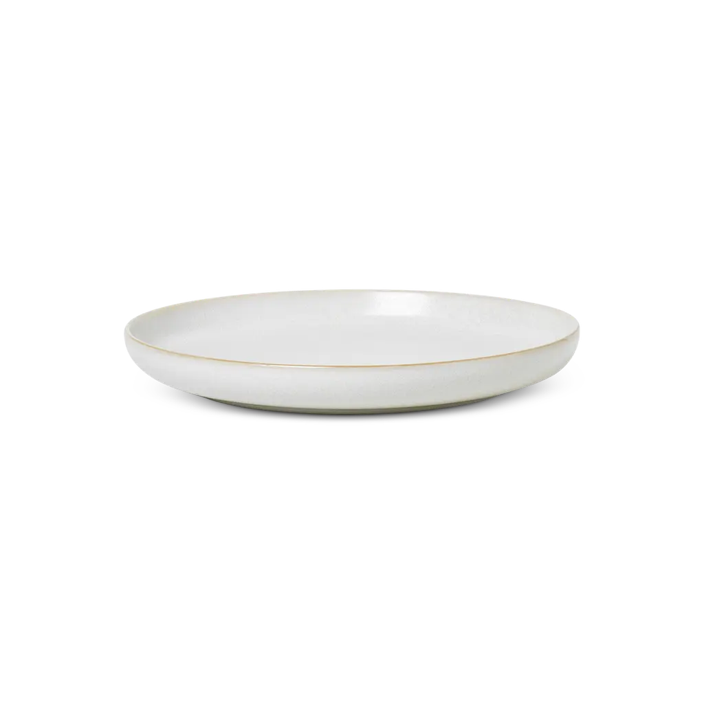 Rediscovering the magic of traditional manufacturing, the cream-colored glazed Sekki Plates with tiny grey speckles and a glorious surface, draw a straight line to the rich Japanese ceramic heritage. The simple shape lets the material with a remarkable feel make up the contemporary expression, while the elegant foot elevates the design, adding a floating expression to the plates. This product has a unique matte glazing. Cutlery marks may therefore appear with use.