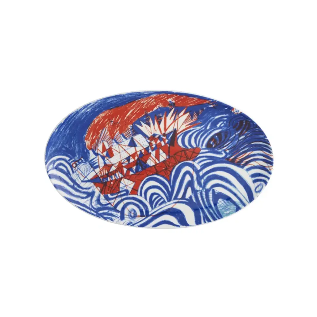 With the Classics on Acid collection from the Diesel Living with Seletti collection you can easily make any dinner party mind-bending and memorable. The series offers a creative twist on a range of traditional pottery decoration styles. Here, Melting Landscape gets a hallucinogenic makeover it features a melted landscape scenery. Seletti has distorted the style to create their tongue-in-cheek version. This dessert plate features a detailed illustration in blue colors with red accents, with the characters and landscape warped in a psychedelic composition. The irregular edge finished with dark red paint completes the design. This plate is ideal to set up an eye-catching dinner table or to create a focal point on a wall.