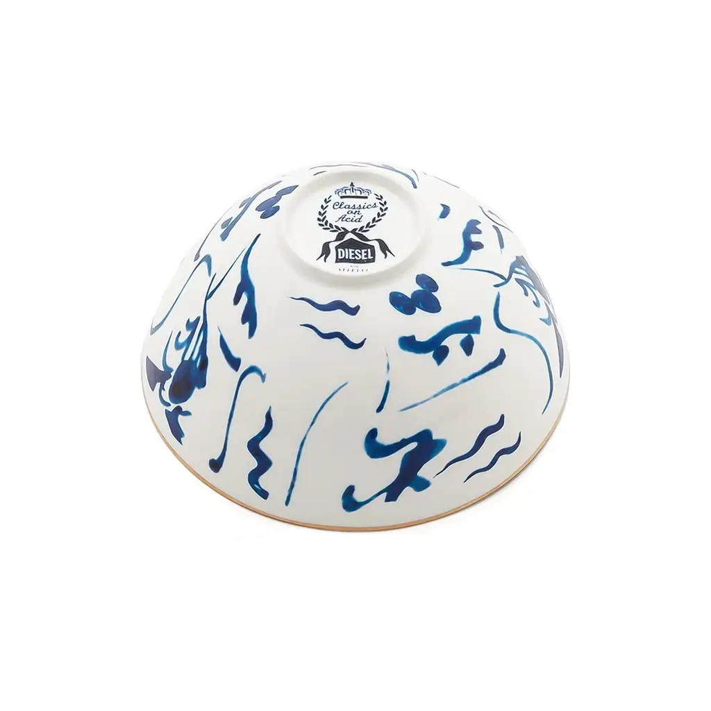 Design as a conversation starter has never looked so good. Meet the Classics on Acid tableware collection from the Diesel Living with Seletti series. Inspired by traditional animal themed decoration, the Salad Bowl Koi boasts a stylized carp, a typical Japanese fish which stands out in the middle of the bowl. Here, the illustration has a hallucinogenic twist, as the shapes twist and turn across the porcelain that is embellished by a golden border. An irregular shape with an asymmetric border reinforces the psychedelic effect. Like other bowls and plates from this series, Koi is crafted from quality porcelain and measures 18 cm in diameter. Perfect to add a quirky accent to a dining table.