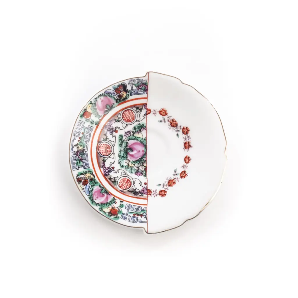 The Hybrid Tamara set includes two cups and two saucers. Italian to the bone, the set was designed by CtrlZak for Seletti and made of bone china, a material known for its strength, chip resistance, whiteness, and translucency. The floral patterns were refined by hand in blue and orange. Representing Eastern and Western traditions, the designs come together with a orange seam in the middle and differing heights of the cup, embracing contrast and giving tea time a taste of deconstructed, punk style. Stunning, functional, and recommended by Elle Magazine in their December 2012 gift guide, the set is heat- and dishwasher-safe, ready for the table.