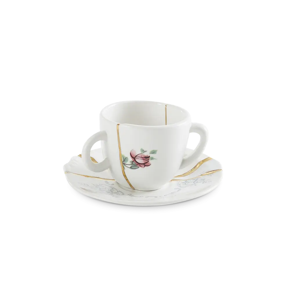 Coffee Cup with saucerMaterial: Porcelain, GoldDishwasher safeKintsugi Japanese art assumes contemporary shapes. The delicate porcelaine is glorified and enriched with gold fragments for a tableweare collection made of charming and unexpected compositions.******************************************************************************************PURCHASE INFORMATIONArticle displayed at the Archiproducts Bari showroom - Corso V. Emanuele II, 189 Bari.For more info or photo details contact the address bari@archiproducts.com******************************************************************************************