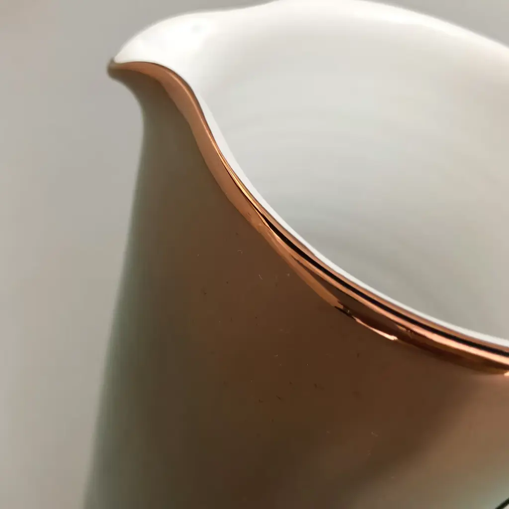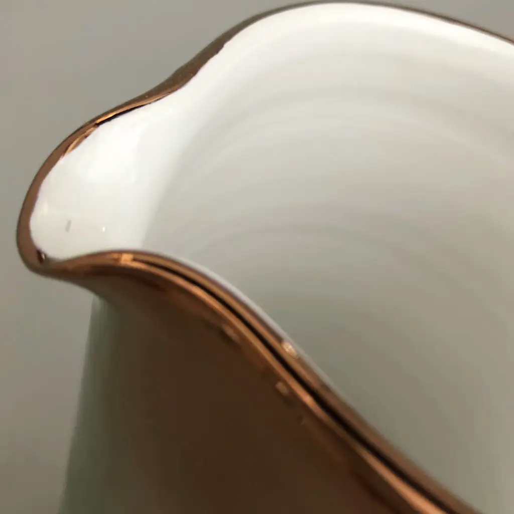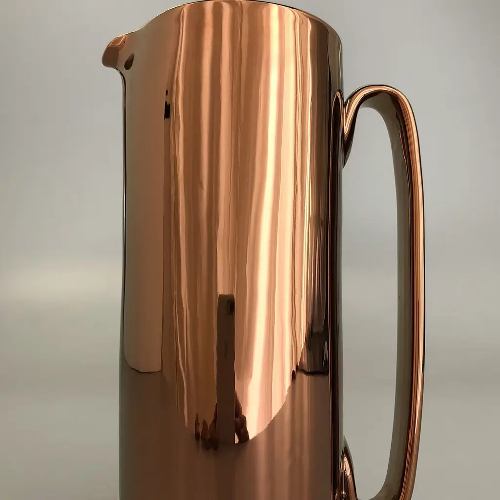 The Serlio Carafe is a stunning example of designer craftsmanship in a functional accessory that will be the highlight of your kitchen or dining room. Handturned in white terracotta, the 1.2 L carafe is finished in a precious bronze glaze with the option of customizing with a short piece of text on the bottom of the item.
