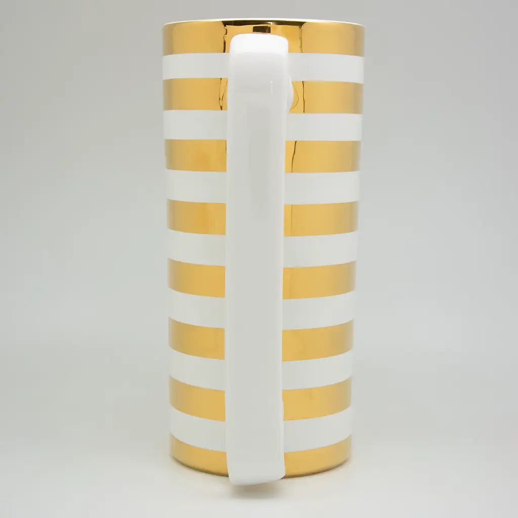 Bring a touch of Venetian aesthetic with the Terzo Fuoco 'Serlio' Gondoliere pitcher, the one and only ceramic carafe with a linear handle. Handthrown in white terracotta, the stunning Serlio Carafe is a beautiful example of fine Italian craftsmanship. Enhance any table with Tuttoattacato's minimalistic design, emphasizing any classic or contemporary dinnerware with its elegant design and quality. Fired multiple times, the Copper stripes evoke the timeless pattern of the Gondolier's shirt.