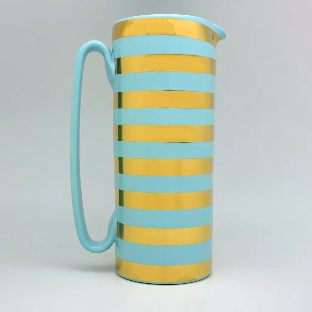 Gift yourself with the authentic 24 K Gold 'Serlio' pitcher, the one and only ceramic carafe with a linear handle. Handthrown in white terracotta, the stunning Serlio Carafe is a beautiful example of fine Italian craftsmanship. Enhance your table with Tuttoattacato's minimalistic design, emphasizing any classic or contemporary dinnerware with its elegant design and quality. Fired multiple times, the 24 K Gold stripes are a result of the traditional 'Terzo Fuoco' technique.