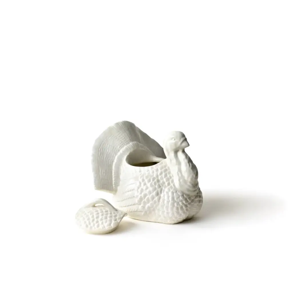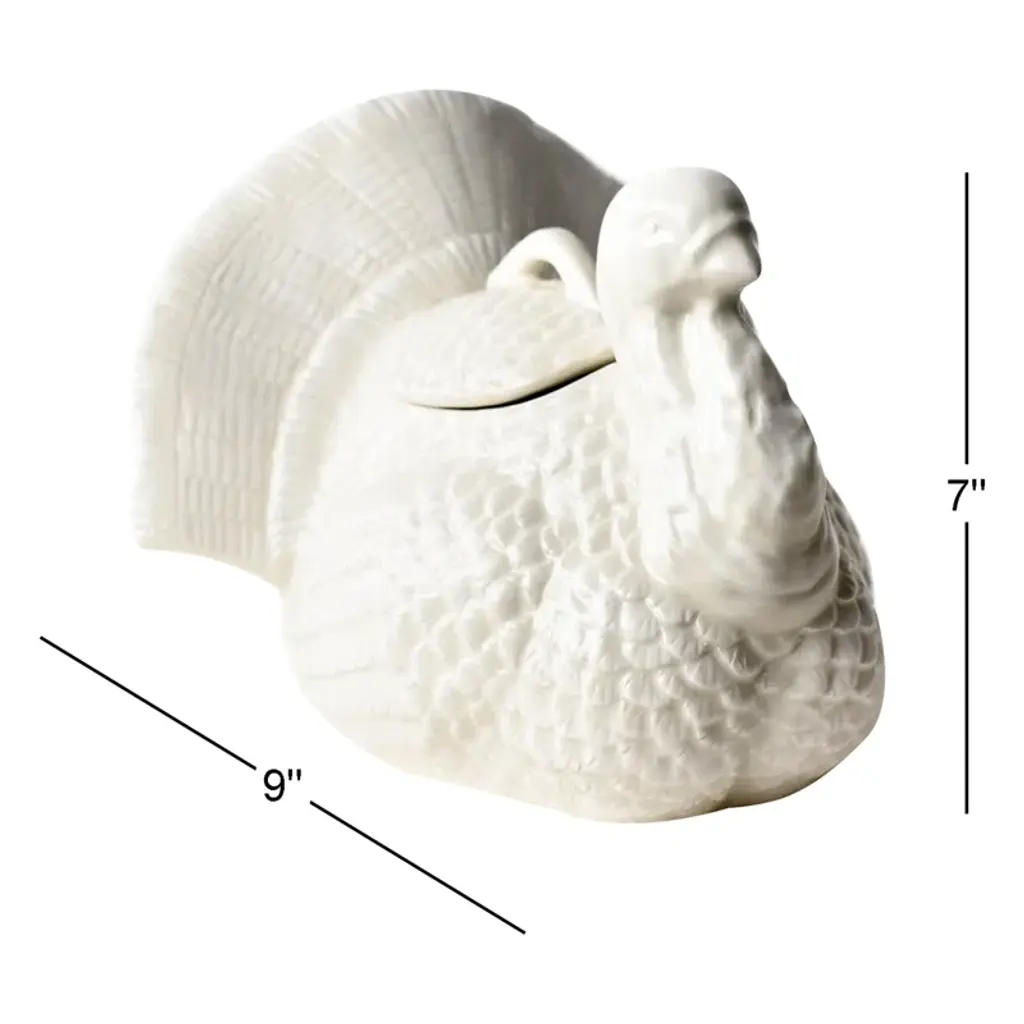 Serve up style as you give thanks for the blessings of the season with dishes displayed in this covered bowl. Whether youre plating a side of vegetables or a main course, this dish provides a serving essential youll cherish for years to come. Use this Thanksgiving-inspired design on your tablescape, then display it on a shelf as part of your holiday dcor.This hand-sculpted covered bowl features hand-painted white brushstrokes, a handled lid, and a style that lets it work as a serving piece, seasonal dcor, or as a centerpiece. From hosting a Thanksgiving feast to creating a festive display in your home, this bowl is a versatile and stylish must-have for the season.Share what youre celebrating with our Turkey 9 Covered Bowl.