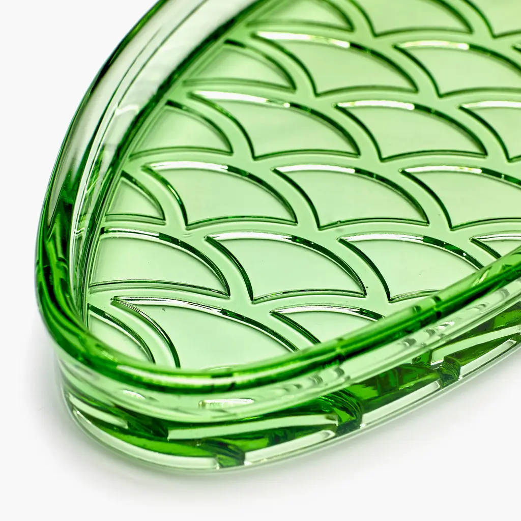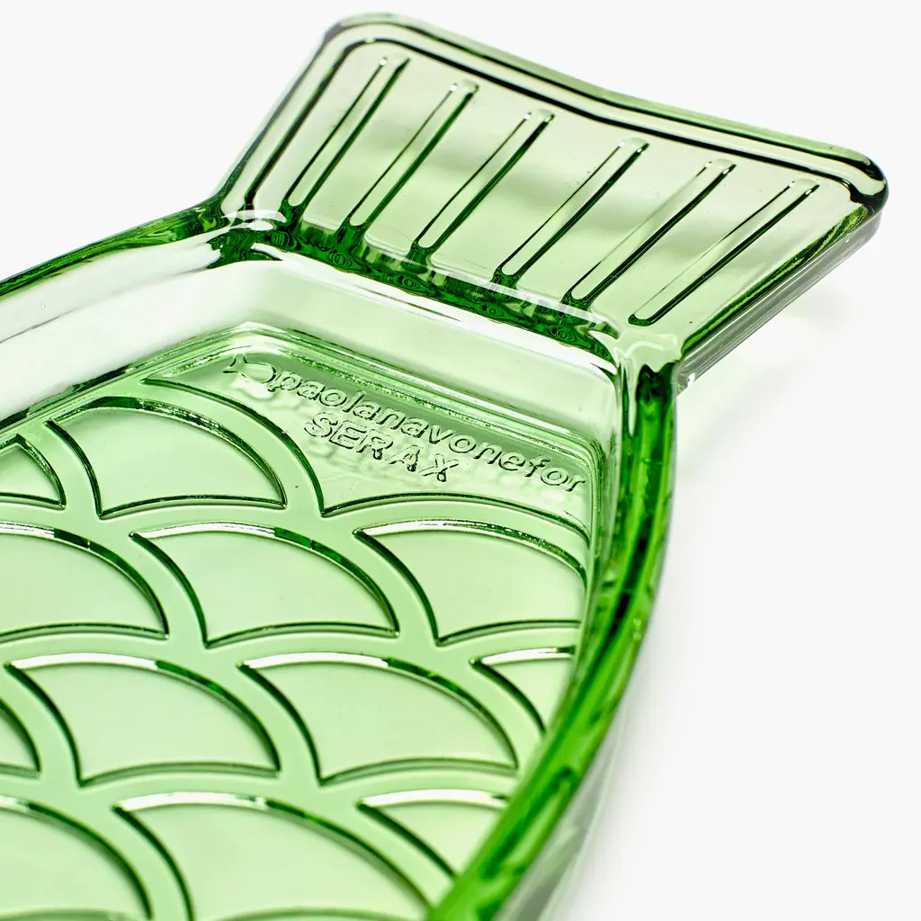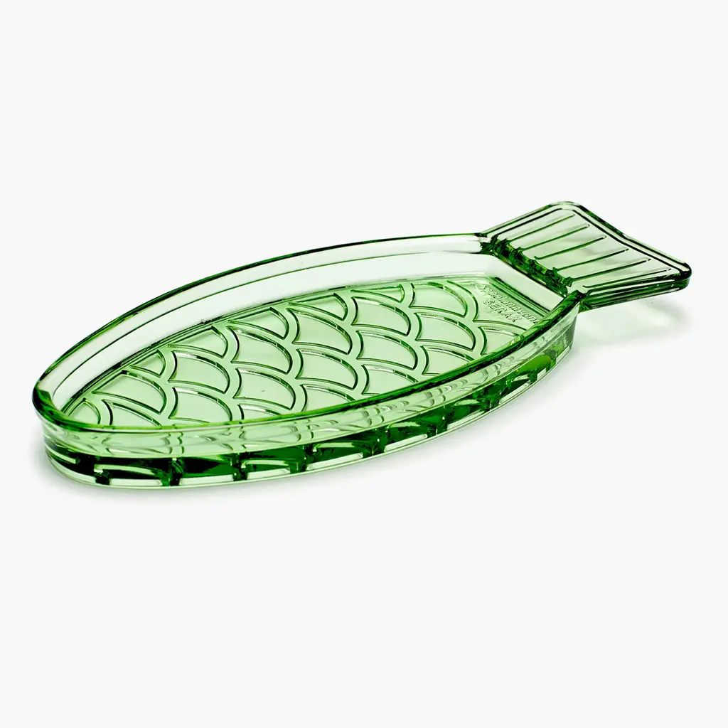 Serve appetizers and finger food with a creative twist and surprise your guests at the same time – with the Serax Fish&Fish Serving Dish. Designed by award-winning Italian designer Paola Navone, this serving dish is as playful and unconventional as it is gorgeously crafted. Like the bottles from the same collection, it’s shaped like a fish. The interior features a detailed and precisely molded fish scale pattern, while the “tail” doubles as a convenient handle. The size of the dish makes it perfect for smaller amounts of food, a nod to the collection’s source of inspiration: the meals prepared in the US during the Great Depression. Every Serax Fish&Fish Serving Dish is solid-pressed from quality glass – this version features a beautiful green color to brighten up any tablescape. Pair this dish with the fish-shaped bottles from the same collection to create the perfect sea-inspired table setting.