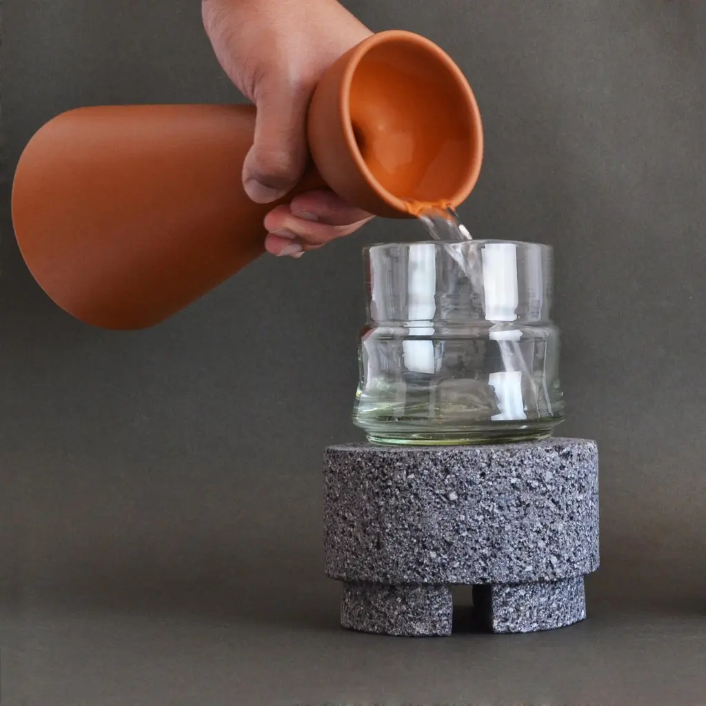 Acatl means "cane" in the Nahua language, the language of the Mexica people.Acatl is also the symbol that represents this element.In turn, this symbol has been used in sculptures and architecture as an "X" shaped element.Our ACATL collection glasses take the shape of this symbol and wrap a cylindrical glass.These glasses are made of 100% recycled glass, mainly coca cola bottles, curiously Mexico is among the countries with the highest consumption of this soft drink in the world.