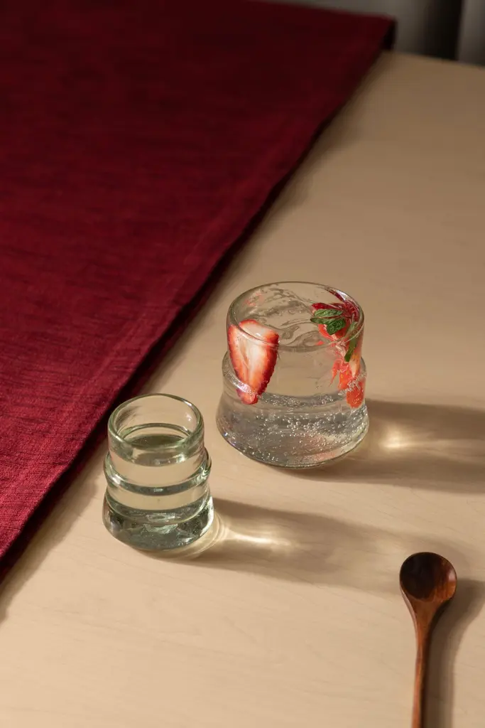 Acatl means "cane" in the Nahua language, the language of the Mexica people.Acatl is also the symbol that represents this element.In turn, this symbol has been used in sculptures and architecture as an "X" shaped element.Our ACATL collection glasses take the shape of this symbol and wrap a cylindrical glass.These glasses are made of 100% recycled glass, mainly coca cola bottles, curiously Mexico is among the countries with the highest consumption of this soft drink in the world.