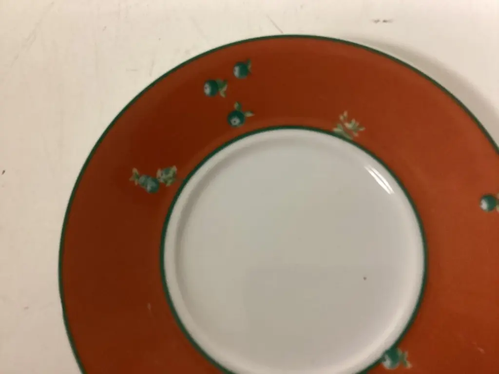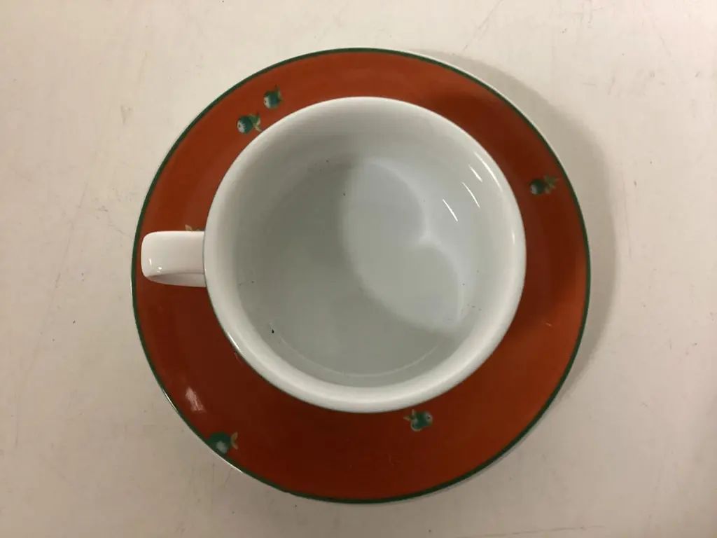 Set 6 Orange Le Cirque N.y. Branded Bernardaud Tea Cups & Saucers With Monkeys
