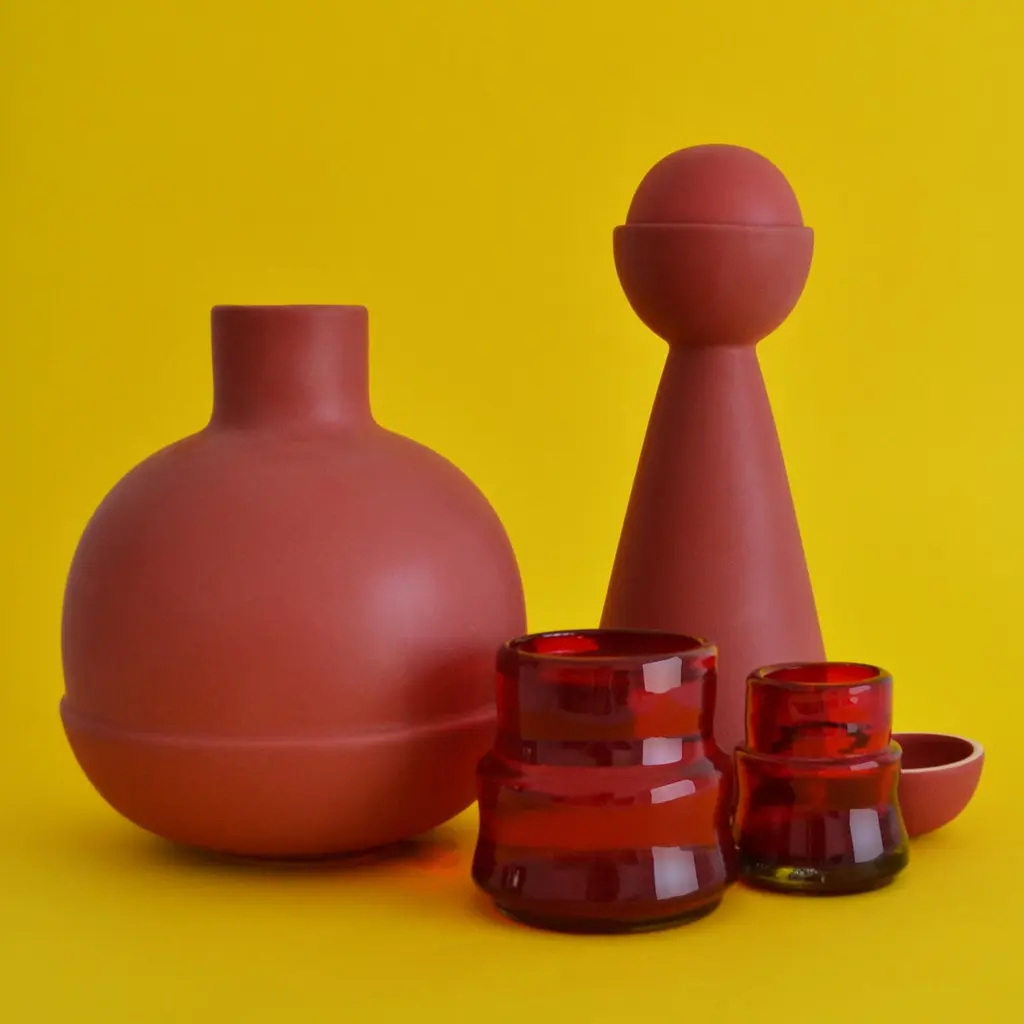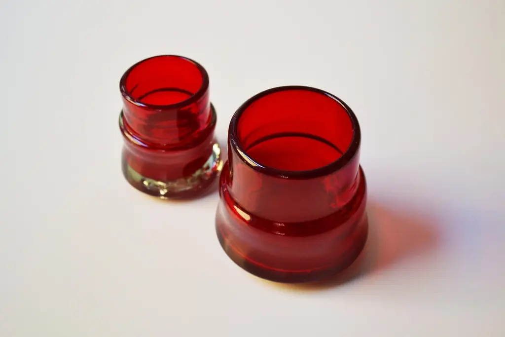 Set 8 Handblown Cocktail Glasses Red. Inspired In Pre-Hispanic Art