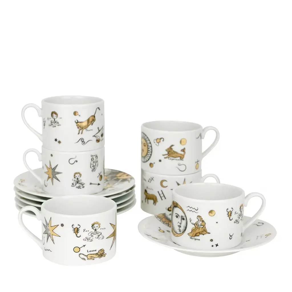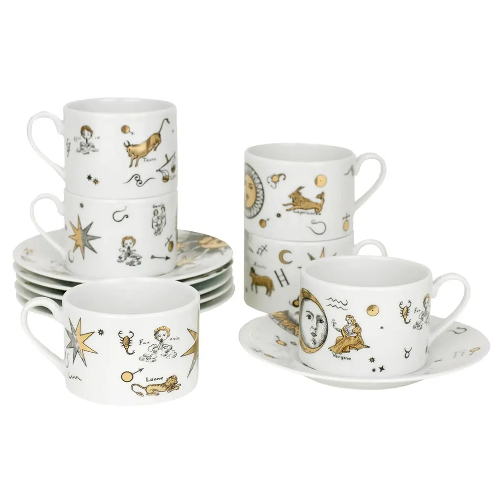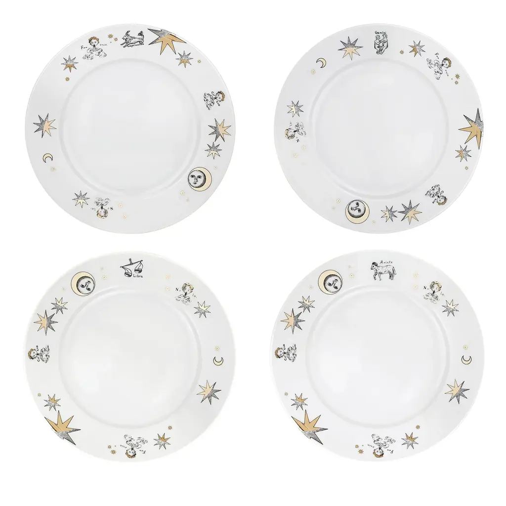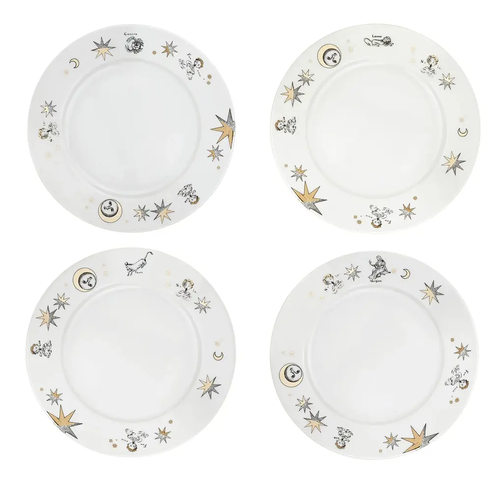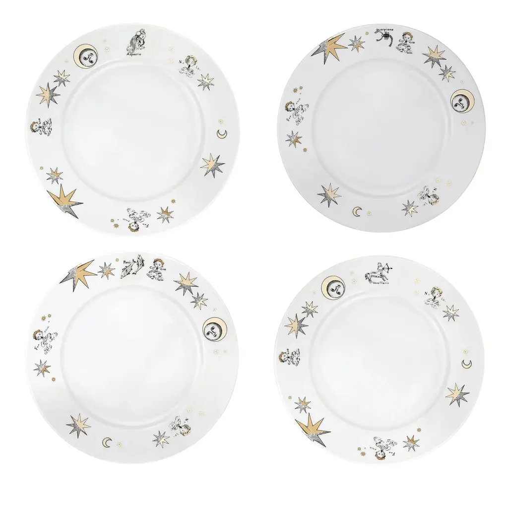 This set of hand-decorated porcelain plates is adorned with exquisite zodiac designs, making this ensemble a true collector's item. One of the 12 signs of the zodiac is depicted on each plate. Any minor discrepancies are the result of craftsmanship and attest to the uniqueness of each product.