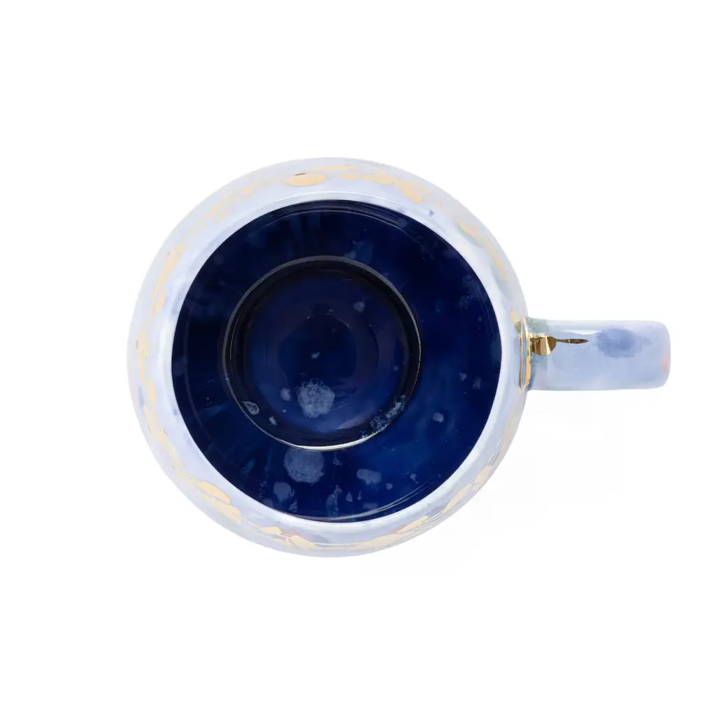 This mug contains 400cl of liquids and is entirely hand-decorated. Manufacturing of this product has been realized with hand-crafted procedures and not industrial. Small imperfections, subsidence, and ripples of the surface are deliberately present and they are a feature of the product, proving the hand-made manufacturing procedure.