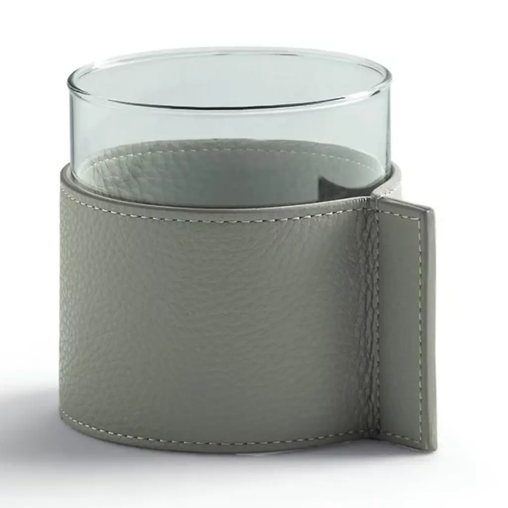 Sophisticated and lightweight, this cylindrical flatware holder in plastic is covered with black leatherette and rope on the outside coherently with the nautical style that defines Marricreo's creations. A hook-shaped decorative element in metal completes this exclusive design. The piece is available in other color options, please ask the Concierge for details.