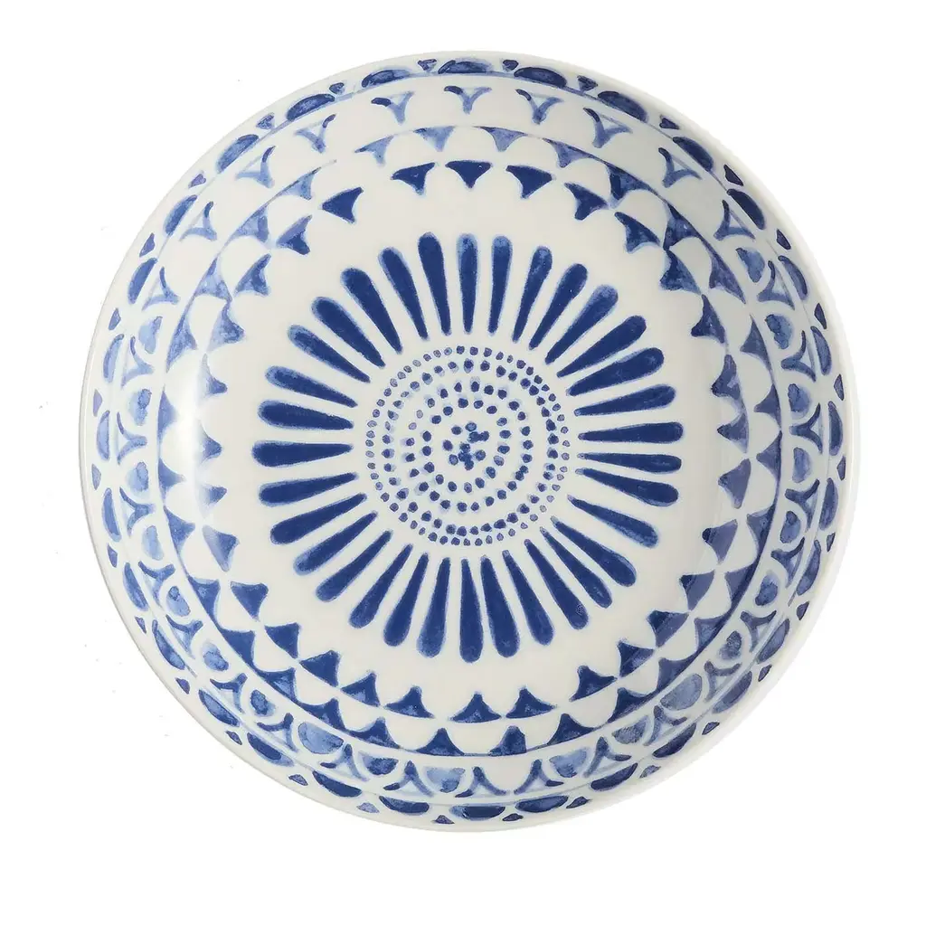 This set of dinner plates is a perfect complement to modern decor. The classic silhouette of this porcelain piece is enlivened with hand-drawn geometric accents in dark blue running along the entire outer edge. Alternating rows of long and short lines creates a unified composition with a unique rhythm and movement. This plate can be combined with others from the Grafismi or Deco series by Isi Porcellana for a complete look. The plate is 26 cm.