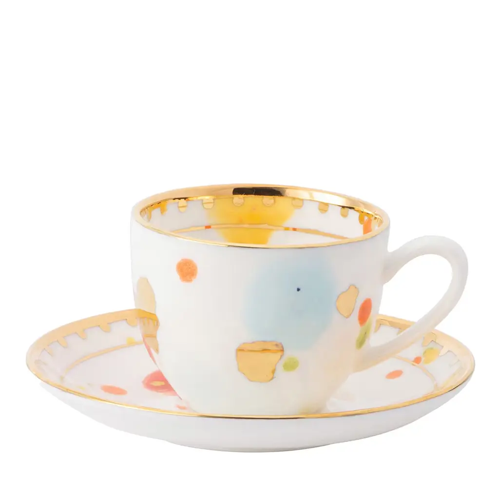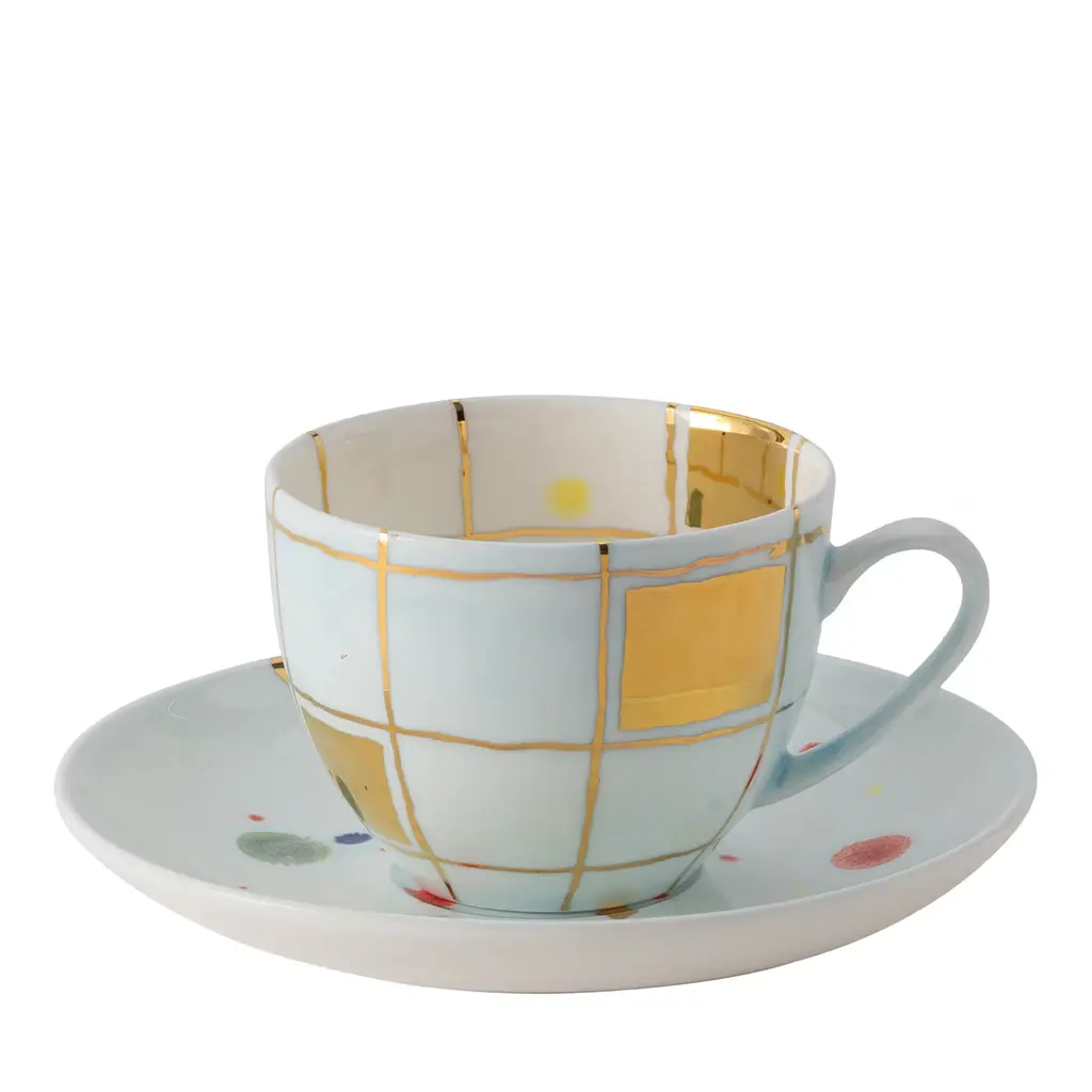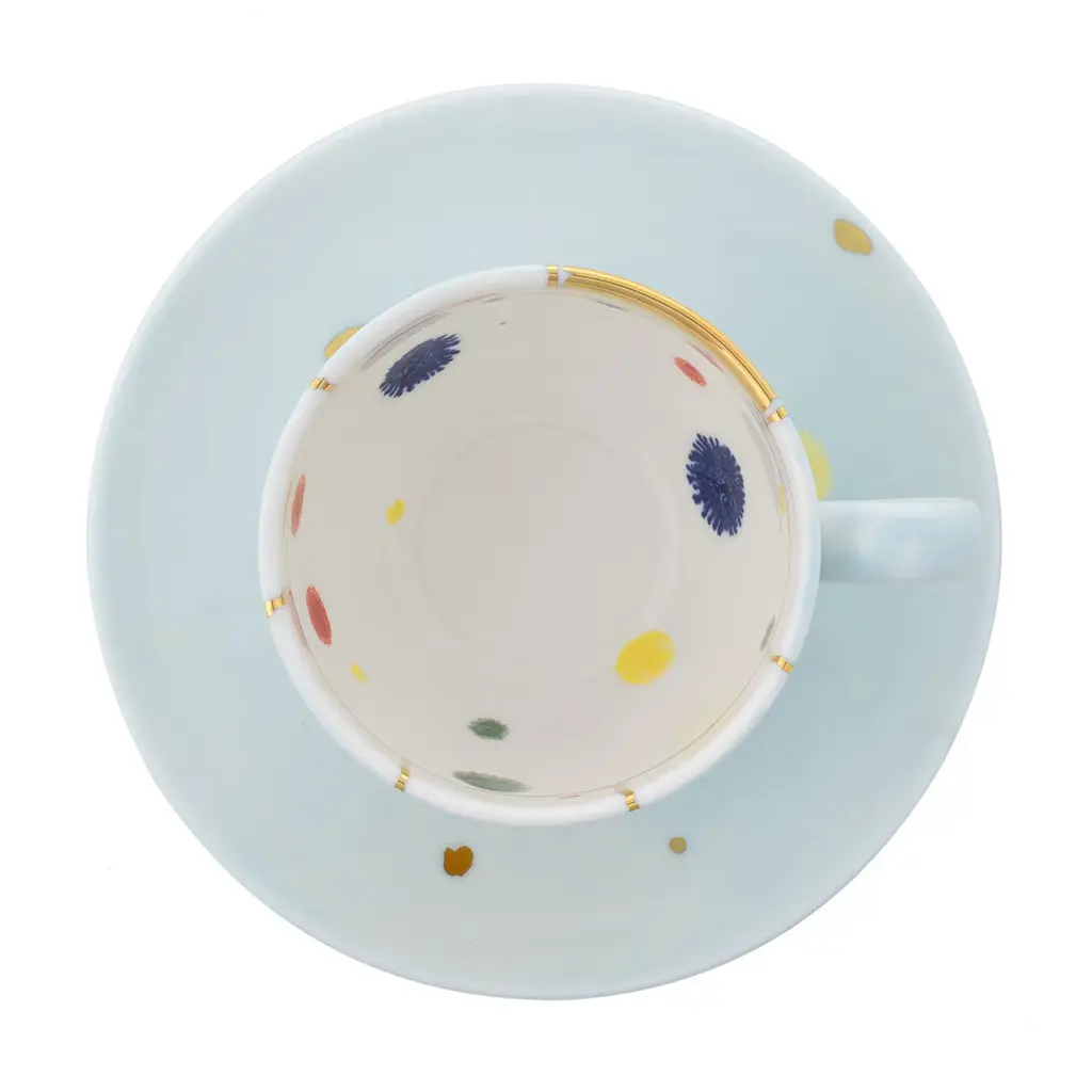 The Florida Collection, launched in 2023, embodies the vibrant and luxurious spirit of Florida. It is adorned with multicolored dots. The surface features an elegant golden net pattern, adding a touch of opulence. Inspired by the colors and atmosphere of the American state, it’s perfect for enjoying tea or coffee in style. It is decorated with a golden net.