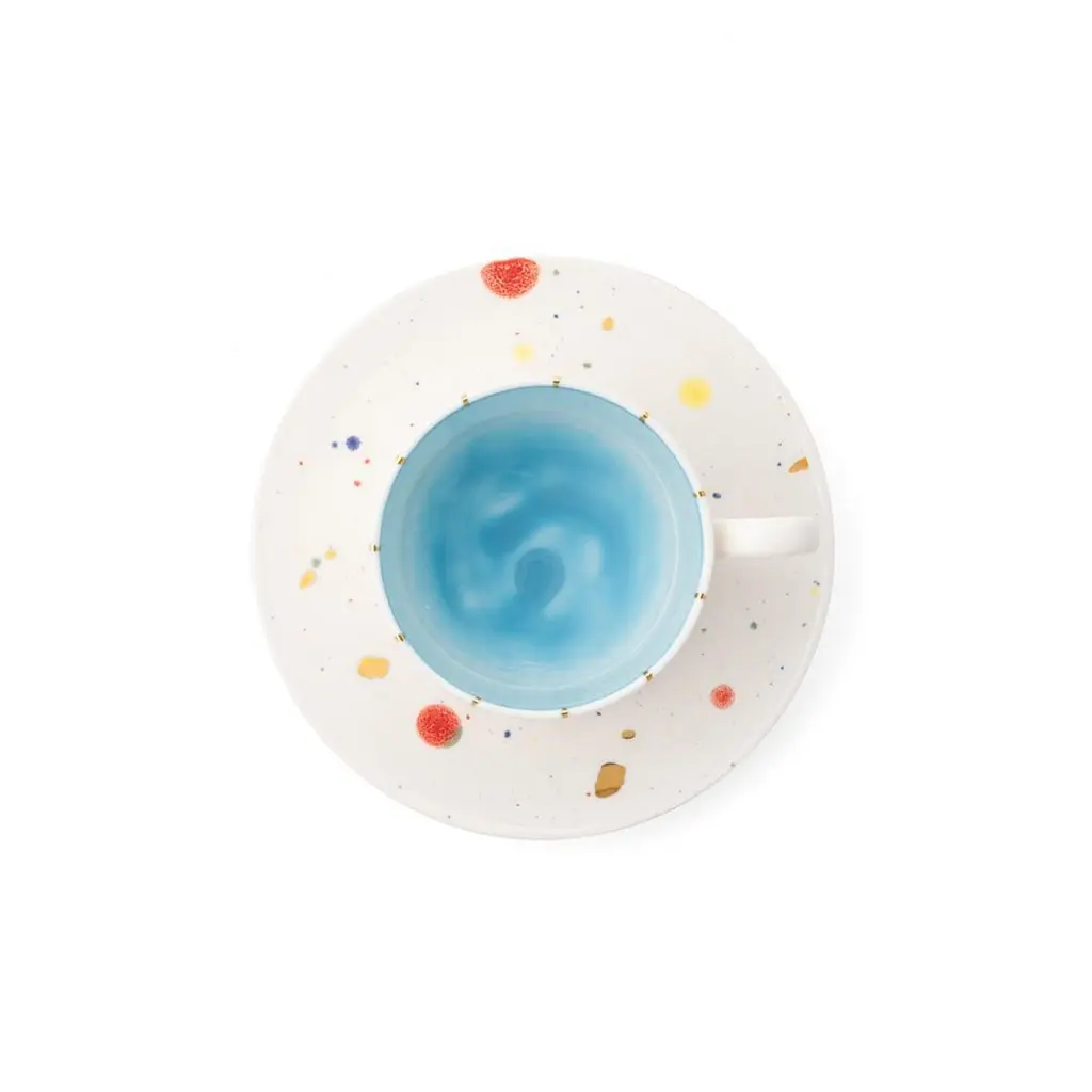 Luxurious and cheerful, the Florida collection was launched in 2023. It is inspired by the American state famous for its strong character and colorful heritage. Each line is characterized by a color. They are inspired by some of the most famous places in Florida, recalling its beaches and its sunsets, stretching between the Gulf of Mexico and the Atlantic Ocean.Palm Beach pink, Miami orange, Amelia green, Naples yellow, Crystal tourqoise, Islamorada lavender.Each plate is decorated with a lightly colored center interspersed with multicolor dots. The rim is richly decorated golden leafs. The charger, tea and coffee cups have are decorated with a golden net- The dessert plates and teapots have a distinct design characterized by golden rays crisscrossing their surface.