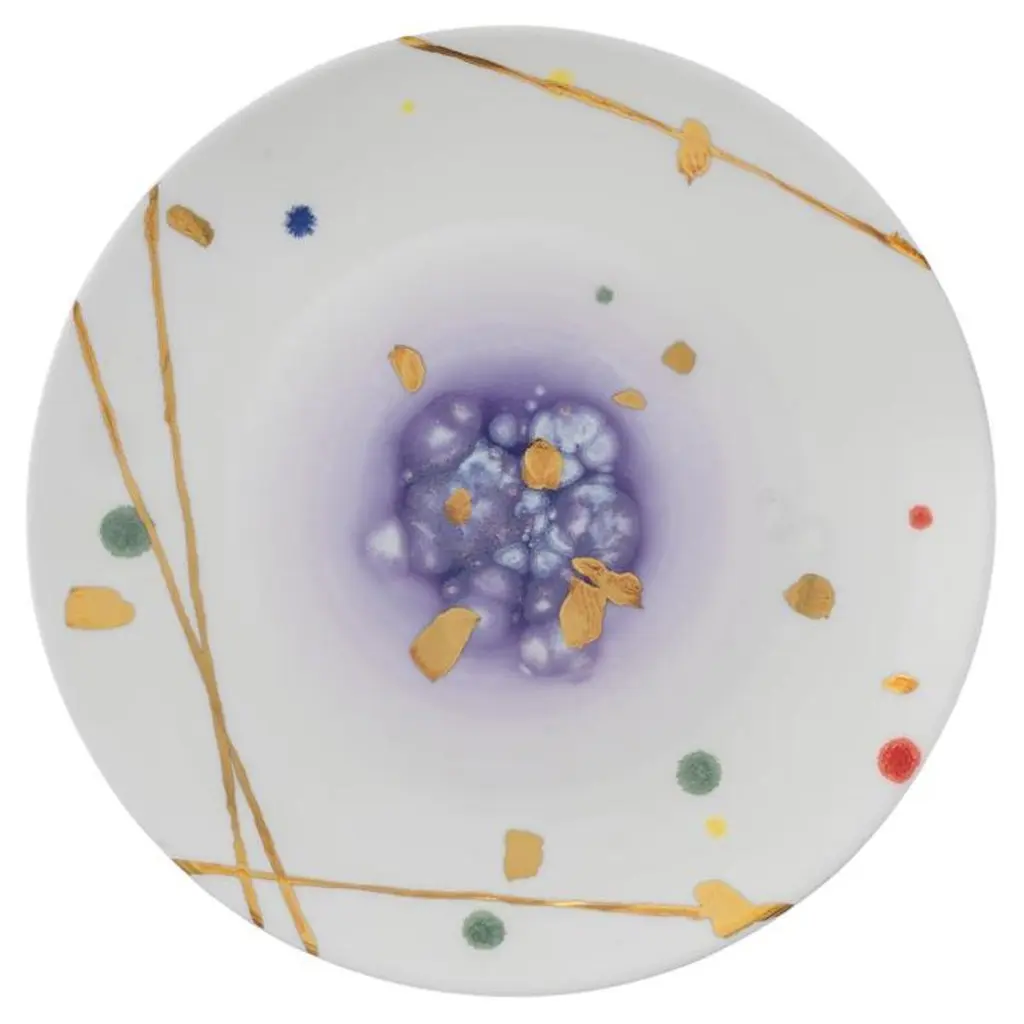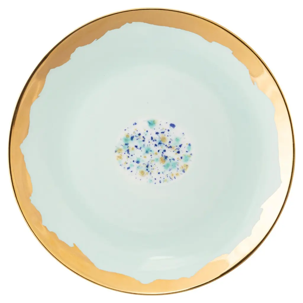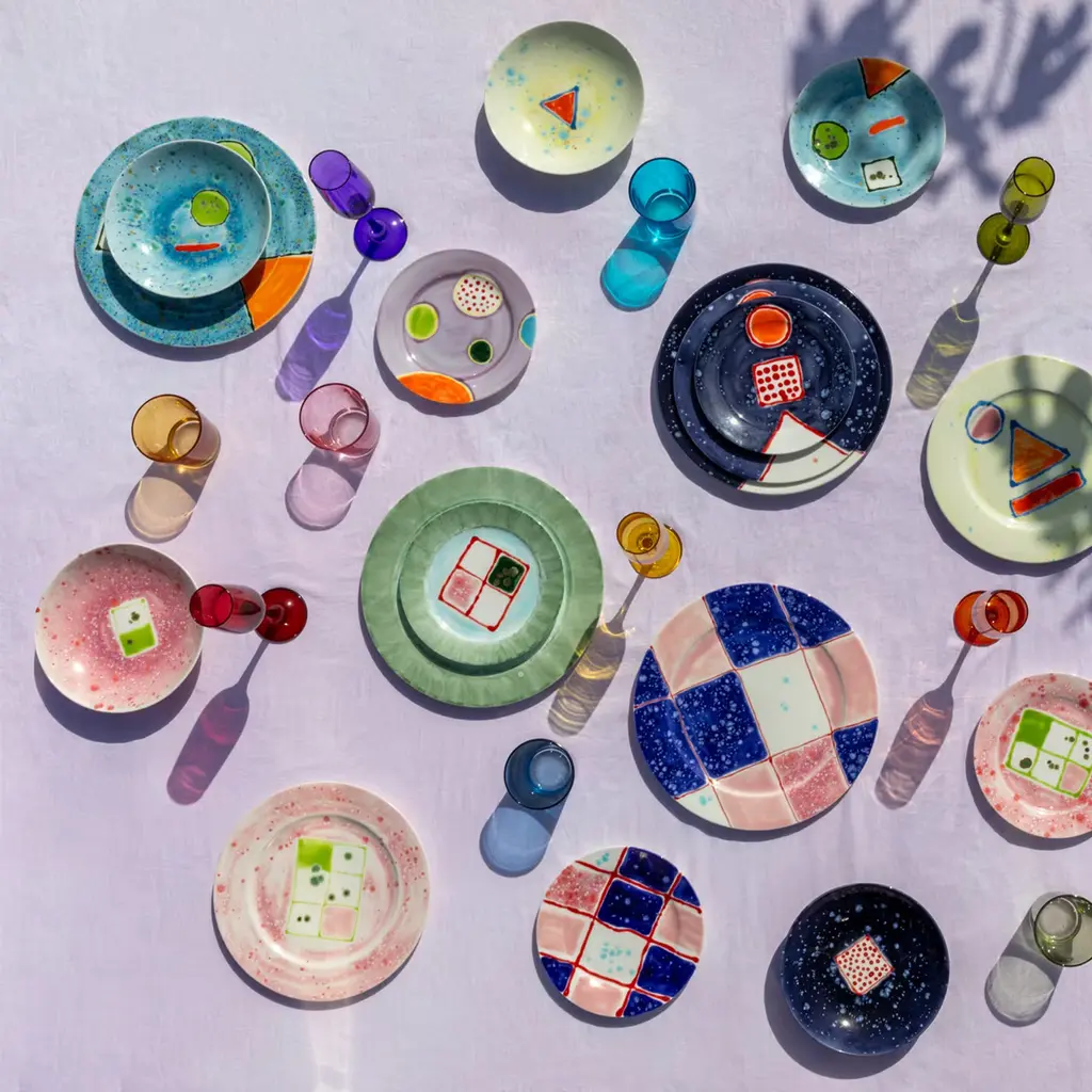 The Jade Dessert Plate features soft pastel green hues paired with striking geometric patterns, creating a harmonious blend of softness and strength. Its contemporary design adds a vibrant touch to any table setting.