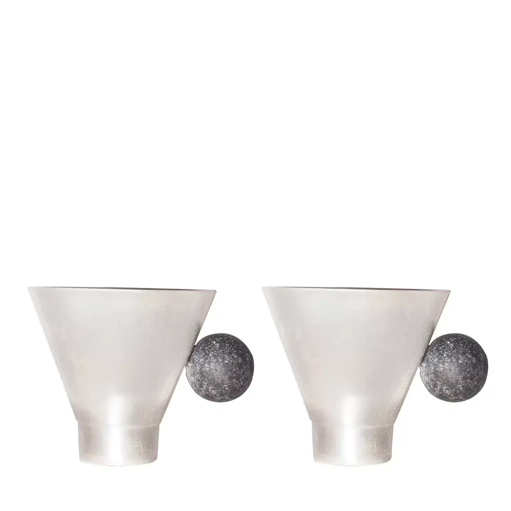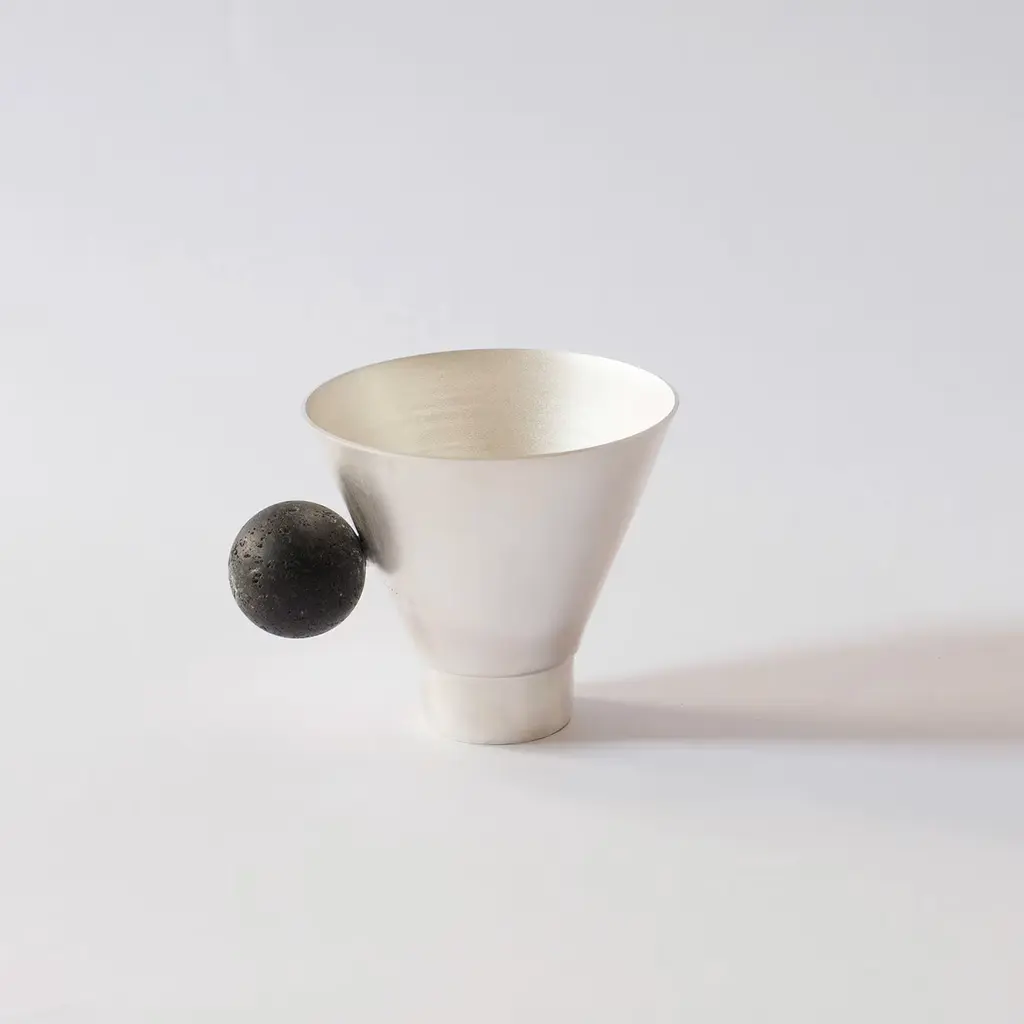 Lava Cup is a handcrafted silver-plated cup with a black lava stone detail in the handle, manufactured in Italy by the greatest artisans using the plate turning technique.