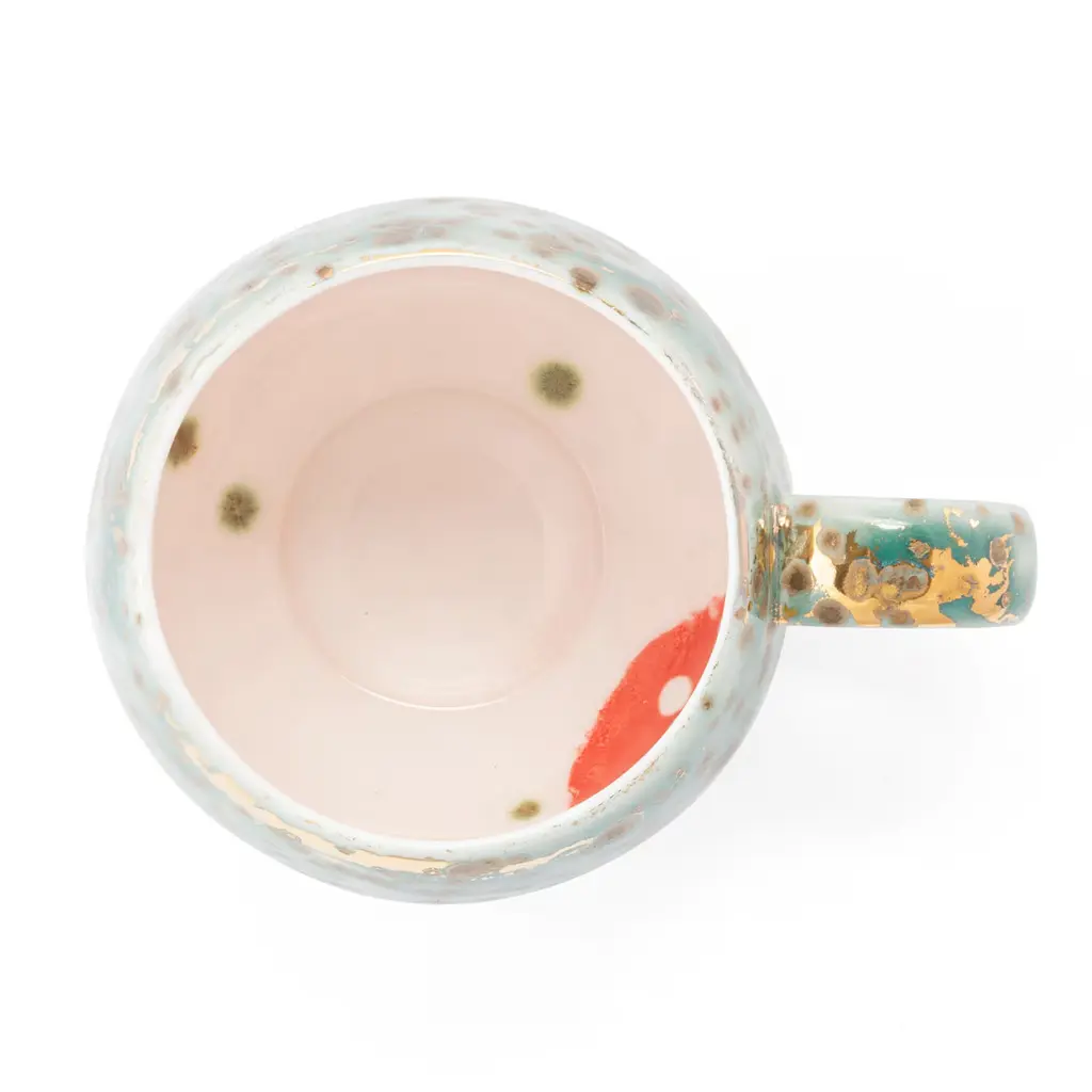 This mug contains 400cl of liquids and is entirely hand-decorated. Manufacturing of this product has been realized with hand-crafted procedures and not industrial. Small imperfections, subsidence, and ripples of the surface are deliberately present and they are a feature of the product, proving the hand-made manufacturing procedure.