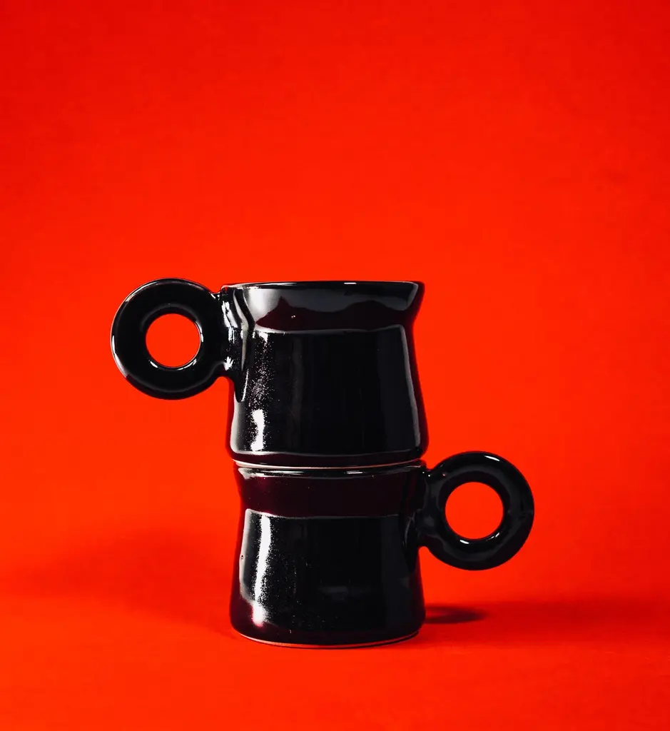 Set Of 2 Mugs in Shiny Black Glazed Ceramic by Eguiarte & EguiarteMaterials: Ceramic.Dimensions: D 13 x W 8 x H 7 cm.Available in different ceramic color options. Capacity of the mug: 8oz. Please contact us.The Eguiarte’s Laboratory was born in 2018, while Miguel Eguiarte was studying Industrial Design at the Universidad Del Valle de México in Guadalajara, Jalisco.Miguel showcases his design conception and industry practices through the union of radical design and his roots in contemporary Mexico, creating pieces such as ceramics, furniture, and everyday products made from various materials.He finds the archeological legacy of Mexico and its dormant relationship to modernity, such as the architecture, local manufacturing, and spiritual perception of these elements, fascinating.His radical design embodies this language in every piece: the abstraction, the color, the form, the material, and the visual perception of an inhabited space, offering us both utilitarian and decorative alternatives for the people.Currently, their work is divided into two catalog sections: "Cotidianos" and "Mobiliario para una nueva década", where we can find pieces like Pelota (ceramic jug) and the side table made of steel, glass, and aluminium.