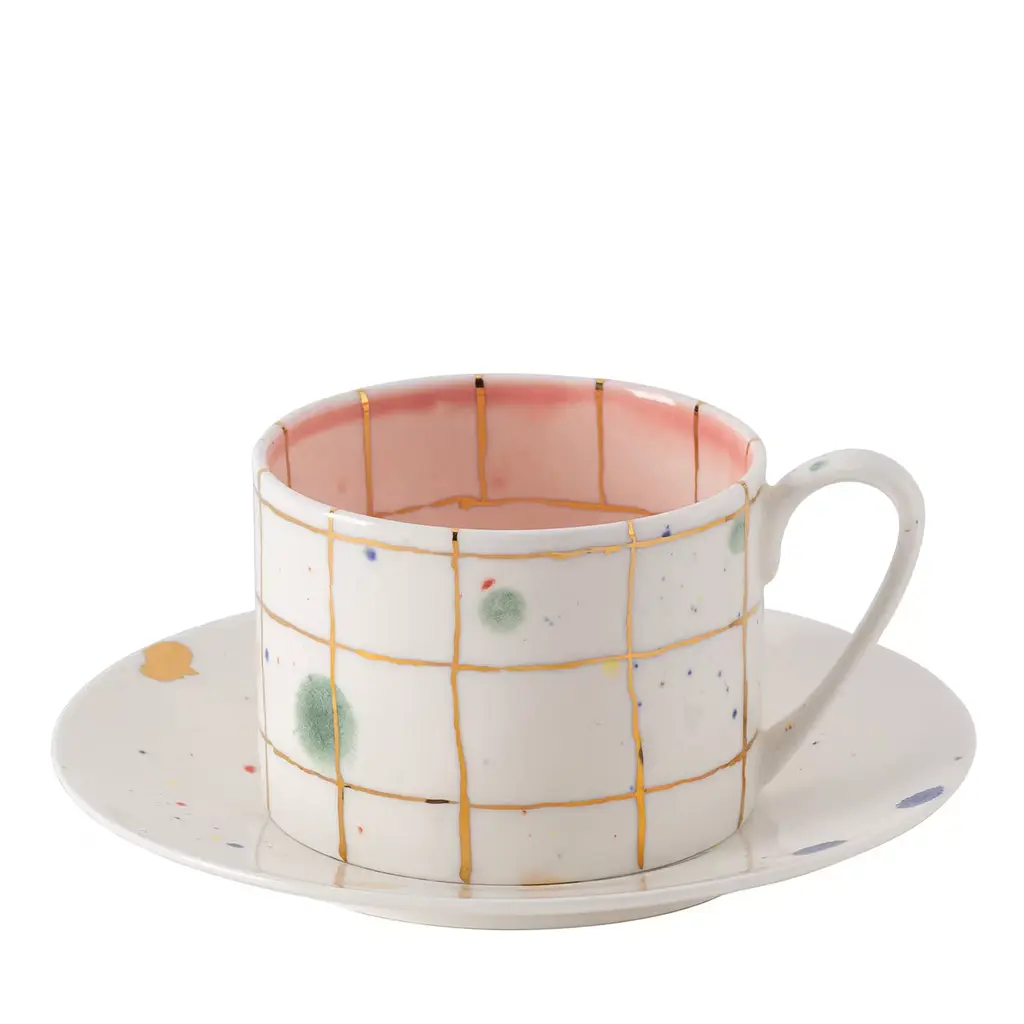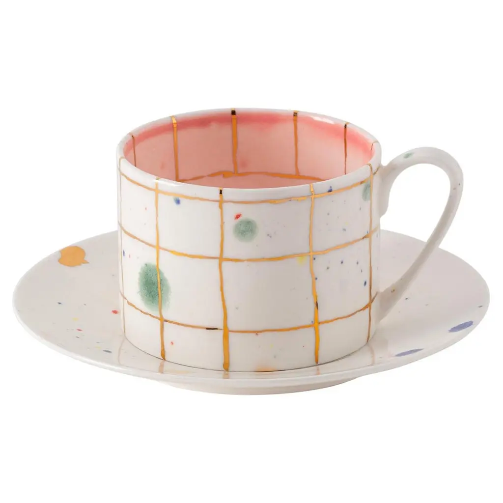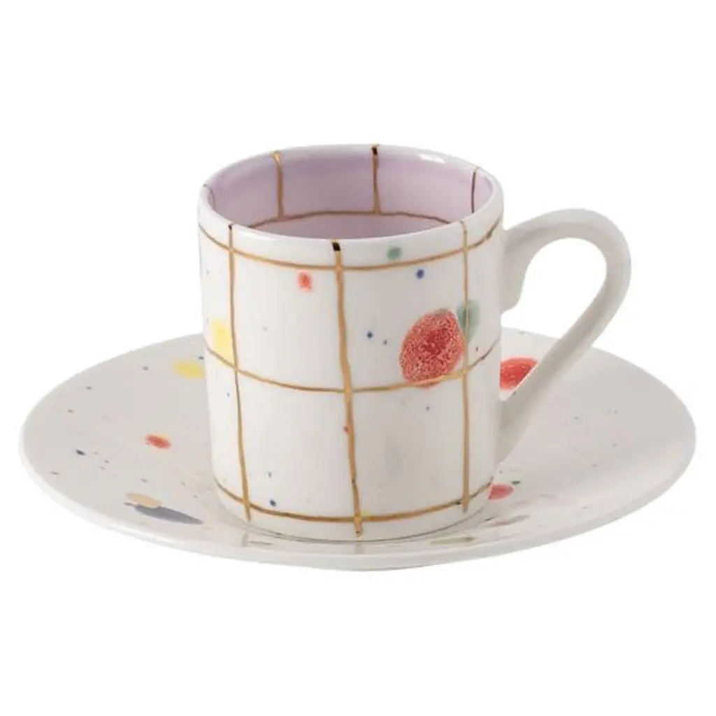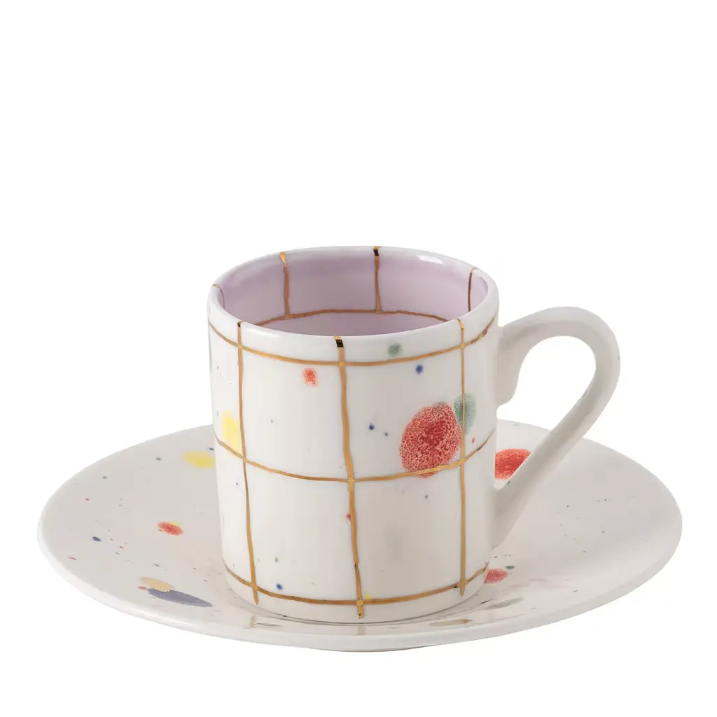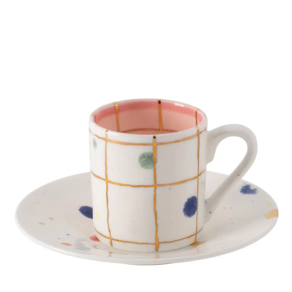 The Naples Coffee Cup from the Florida collection radiates luxury and cheer, embodying the vibrant spirit of Florida since its launch in 2023. Inspired by the state's colorful heritage, this piece features a sunny Naples yellow, reminiscent of its stunning beaches and sunsets. Is is adorned with multicolor dots and a golden net, adding a whimsical touch.