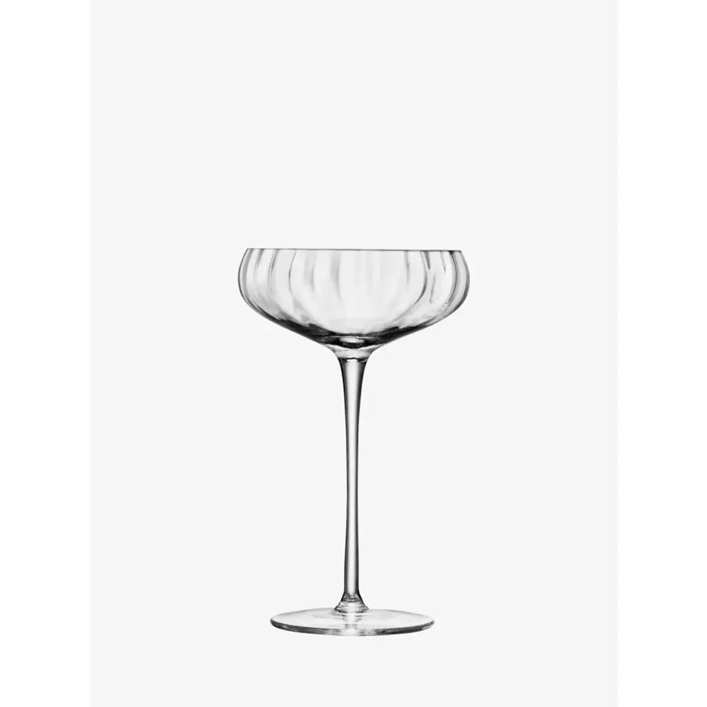 The Nereida coupes reference an enchanting mythological undersea world. Each piece is handmade in Italy by master glassblowers using high-quality borosilicate glass. Resistant to thermal shock, allowing for use with either cold or hot beverages.