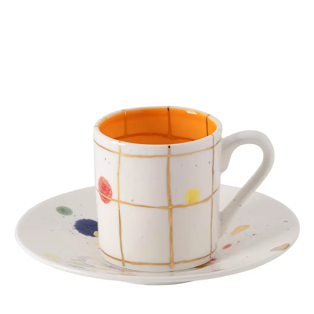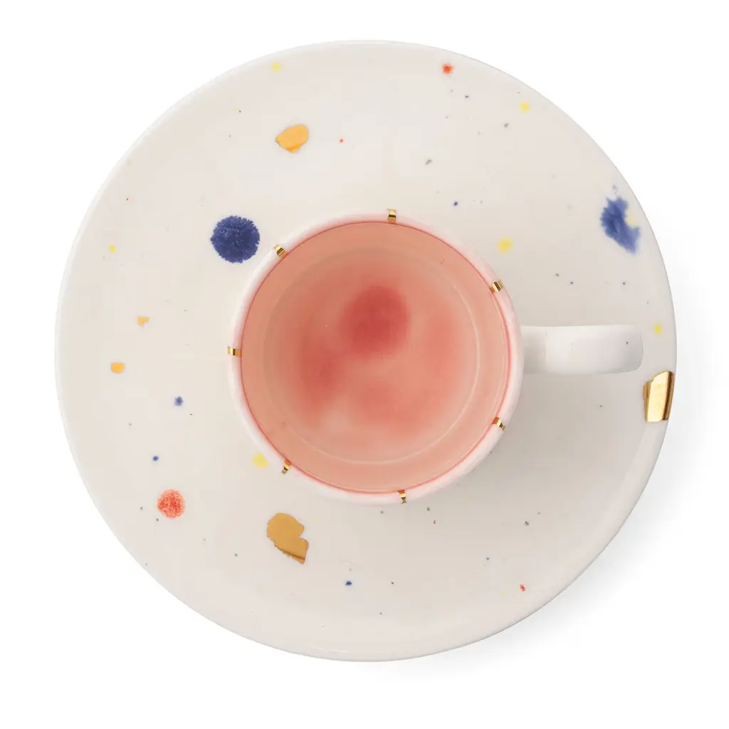 The Palm Beach Coffeecup & Saucer from the Florida collection is a delightful blend of luxury and cheerfulness, launched in 2023. Inspired by Florida’s vibrant character and colorful heritage, this coffeecup features a charming Palm Beach pink hue, reminiscent of the state's stunning sunsets and beautiful beaches. The design is adorned with a lightly colored center sprinkled with multicolor dots and a golden net.