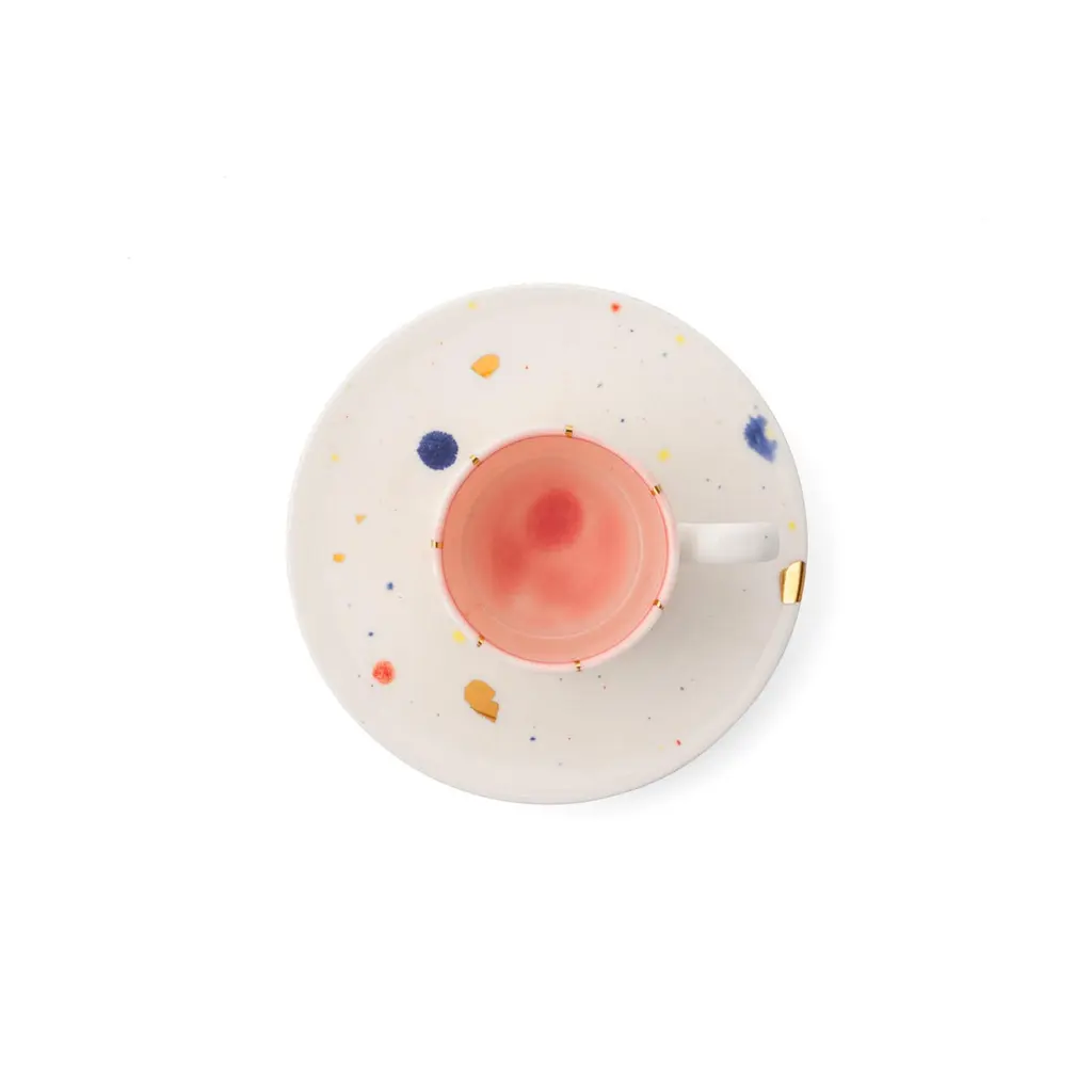 Luxurious and cheerful, the Florida collection was launched in 2023. It is inspired by the American state famous for its strong character and colorful heritage. Each line is characterized by a color. They are inspired by some of the most famous places in Florida, recalling its beaches and its sunsets, stretching between the Gulf of Mexico and the Atlantic Ocean.Palm Beach pink, Miami orange, Amelia green, Naples yellow, Crystal tourqoise, Islamorada lavender.Each plate is decorated with a lightly colored center interspersed with multicolor dots. The rim is richly decorated golden leafs. The charger, tea and coffee cups have are decorated with a golden net- The dessert plates and teapots have a distinct design characterized by golden rays crisscrossing their surface.