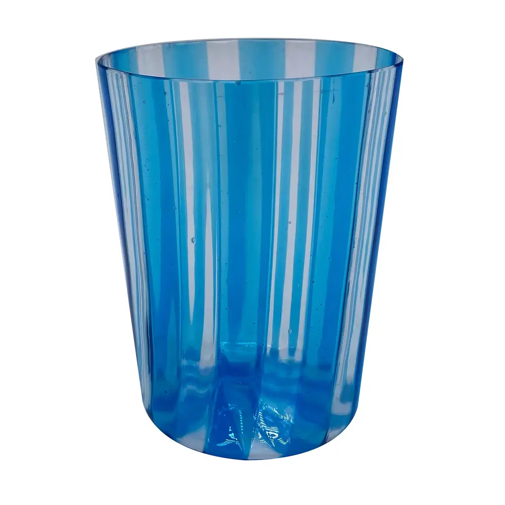 A lively and sophisticated addition to a contemporary-style, elegant dining table, this set of two water glasses boasts a striking polished green hue. A celebration of the century-old Murano glassmaking tradition, it is handmade of ribbed glass. It will be ideally combined with other sets of different hues. Please consult the Artemest catalog for other available colors.