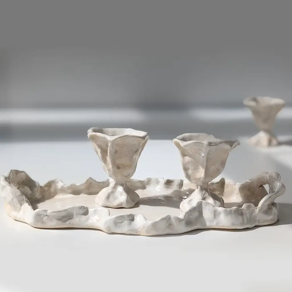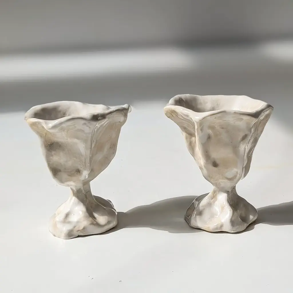 This set of two coffee cups from the Rocco collection, feature a goblet shape inspired by baroque forms with a contemporary reinterpretation. Each cup is uniquely shaped through a careful manual process, making every piece one of a kind. The irregular, sculptural design brings artistic warmth and elegance to both refined and minimalist table settings while enhancing the coffee break experience with functionality and artisanal charm.