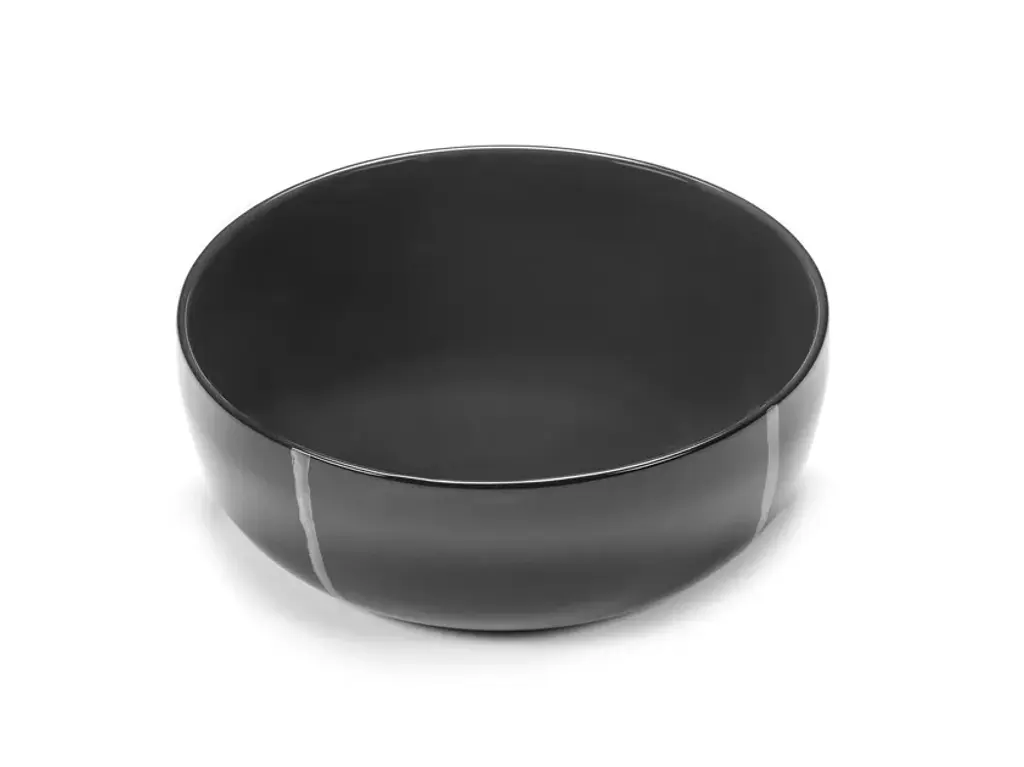 A captivating black painted decoration of strong geometric value graces the white ceramic surface of the two salad bowls composing this set. Masterfully crafted by hand, this set is the splendid result of the partnership between Fratelli Colì and Kiasmo.