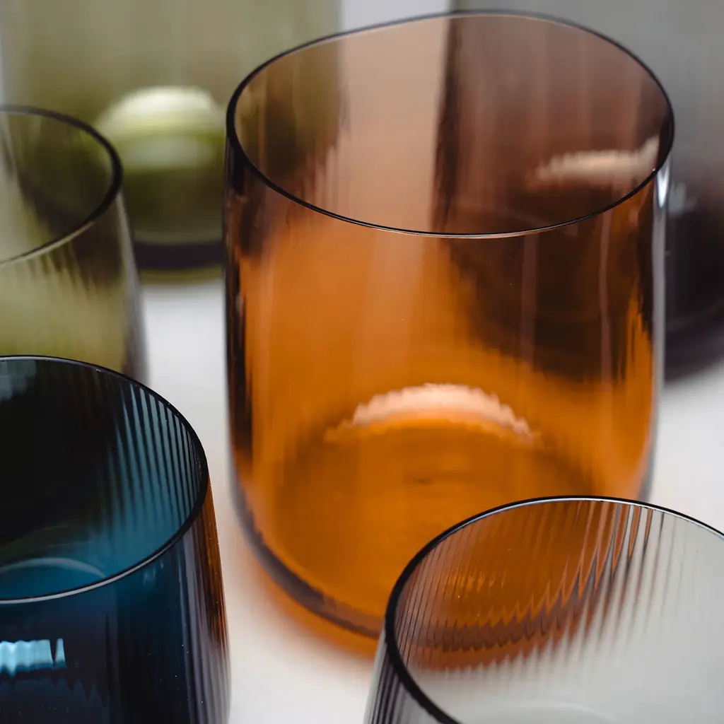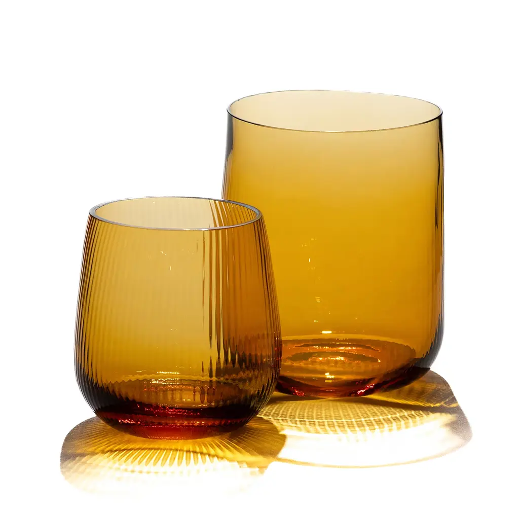 Stilla, the Latin word for a drop of water, embodies liquid transparency and perfection. Designed by Federico Peri for Purho in spring 2024, Stilla Liquida large glasses in amber yellow feature textured surfaces and gently elliptical shapes. Engraved with the rigadin technique, their thin vertical lines preserve the glass’s transparency. Crafted from Murano glass. They are also available in smaller sizes and different colors. Please, contact the Concierge for more information.