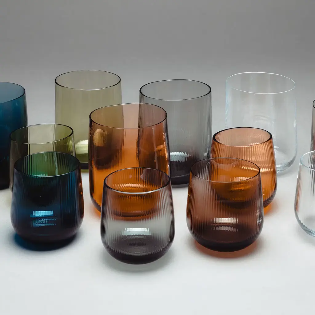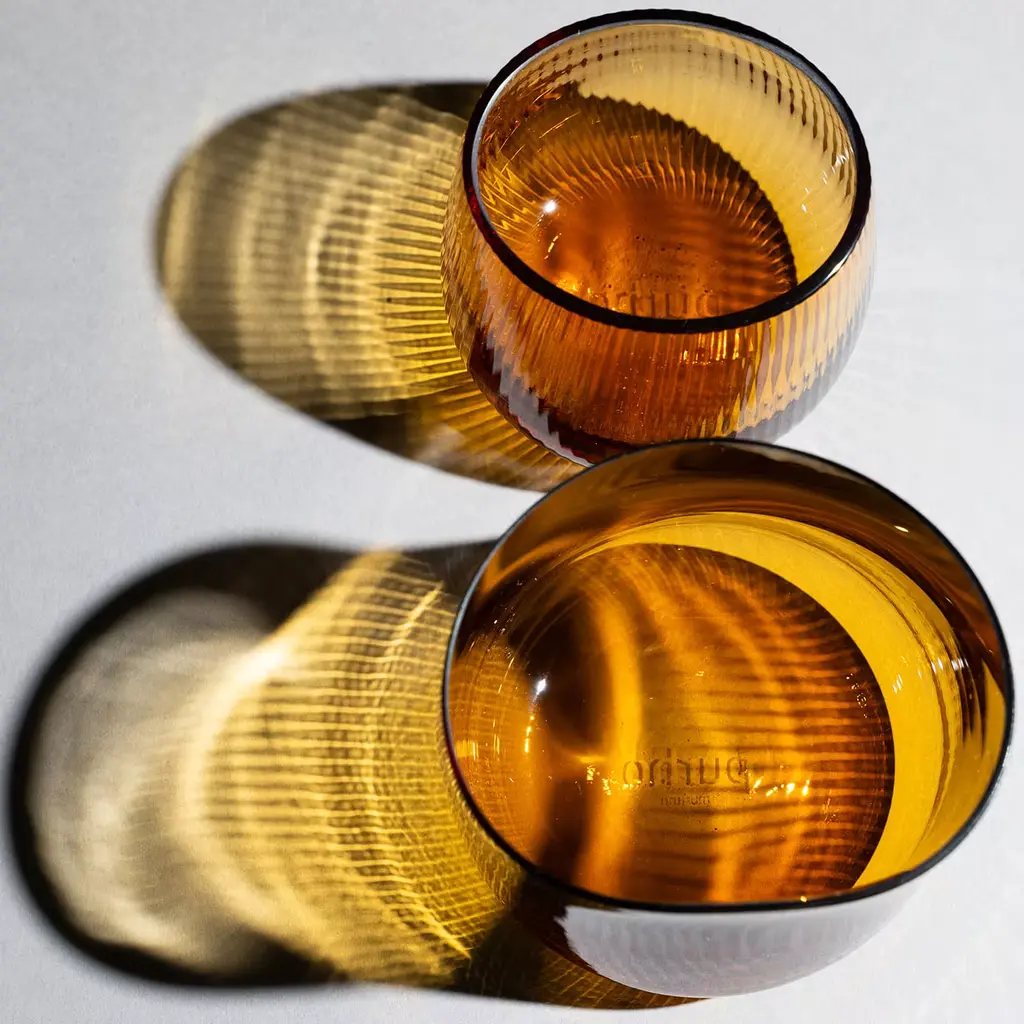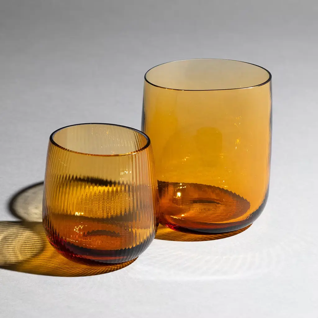 Stilla, the Latin word for a drop of water, embodies liquid transparency and perfection. Designed by Federico Peri for Purho in spring 2024, Stilla Liquida small glasses in amber yellow feature textured surfaces and gently elliptical shapes. Engraved with the rigadin technique, their thin vertical lines preserve the glass’s transparency. Crafted from Murano glass. They are also available in larger sizes and different colors. Please, contact the Concierge for more information.
