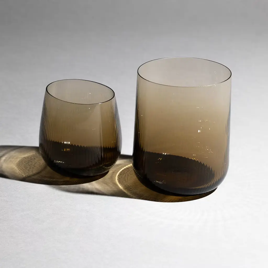 Set Of 2 Stilla Liquida Coffee Brown Large Glasses By Federico Peri
