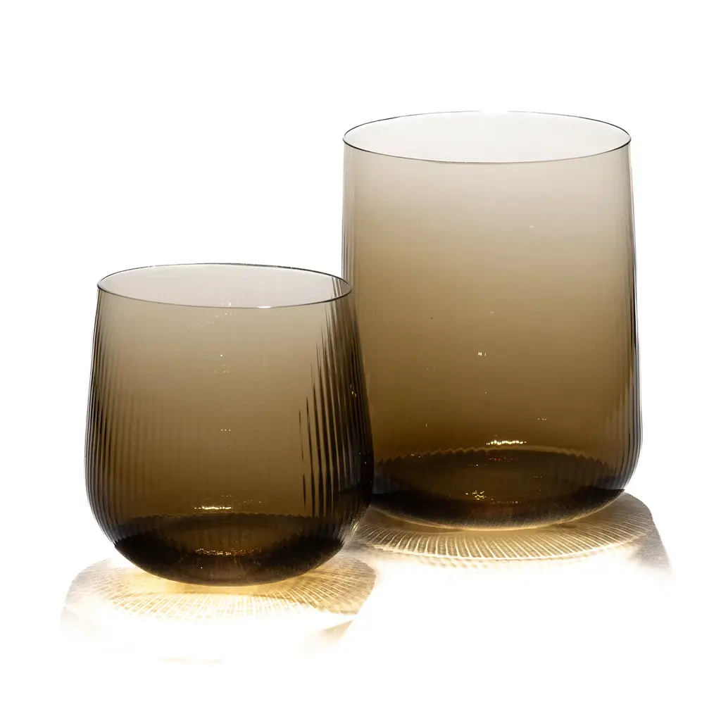 Set Of 2 Stilla Liquida Coffee Brown Small Glasses By Federico Peri