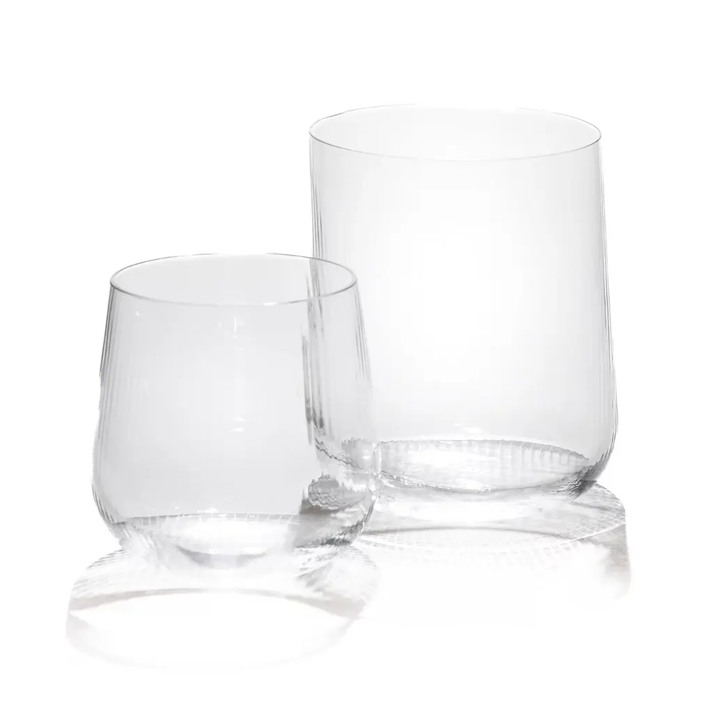 Stilla, the Latin word for a drop of water, embodies liquid transparency and perfection. Designed by Federico Peri for Purho in spring 2024, Stilla Liquida large glasses in crystal feature textured surfaces and gently elliptical shapes. Engraved with the rigadin technique, their thin vertical lines preserve the glass’s transparency. Crafted from Murano glass. They are also available in smaller sizes and different colors. Please, contact the Concierge for more information.