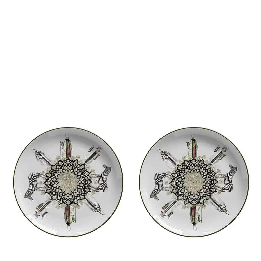 Decorated in sepia over a white background, this porcelain plate is part of the Topkapi series, inspired by its namesake palace in Istanbul that served as the headquarters of the Ottoman Empire in the 15th century. As seen from a closed gate, the lovely outdoor scene of a tent among trees is rendered in vivid and naturalistic details and evokes the mysteries and elegance of ancient Turkey. Either used with identical ones, or combined with other pieces of different colors from the same series, this plate will be a superb addition to any table.