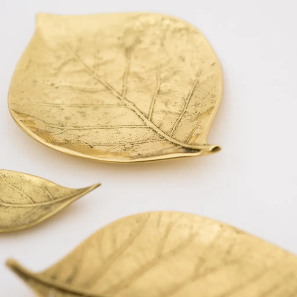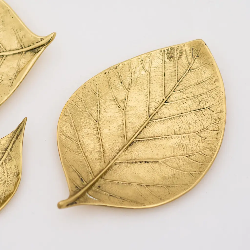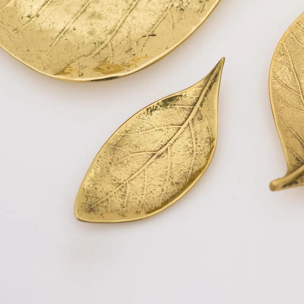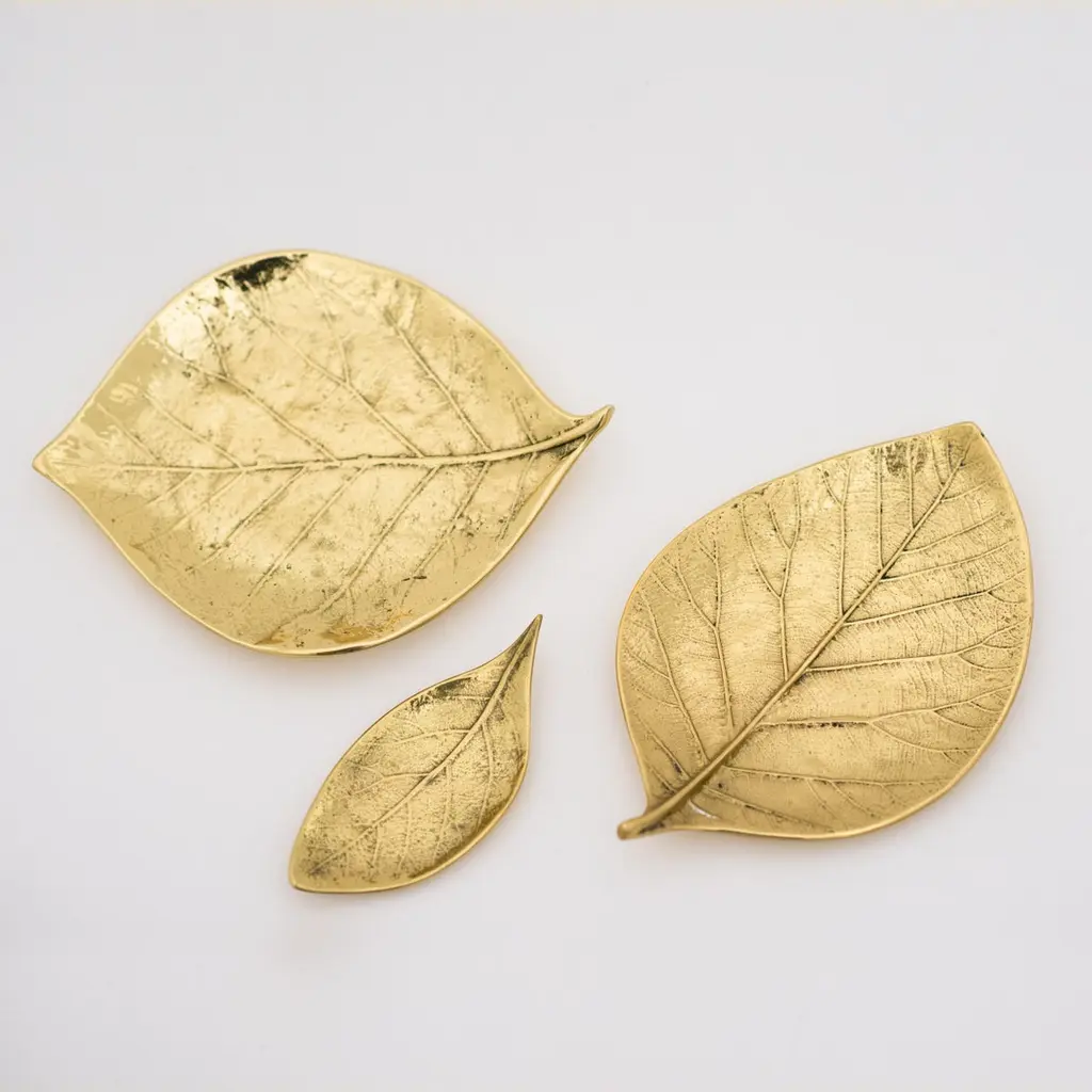 Set Of 3 Handmade Cast Brass Leaves Decorative Dishes, Vide Poches