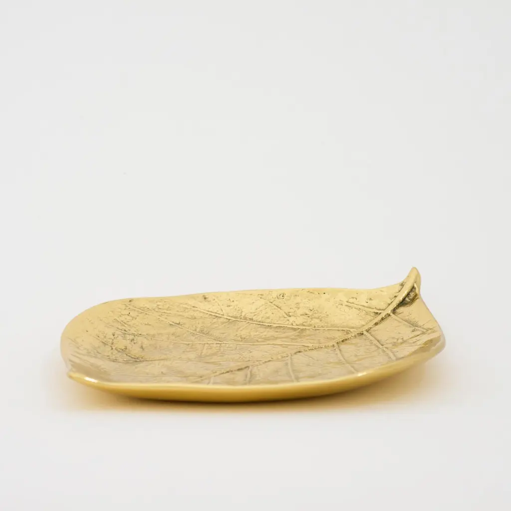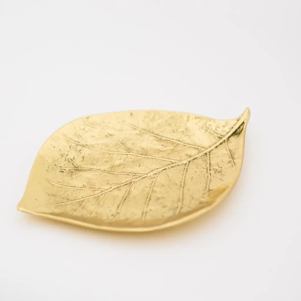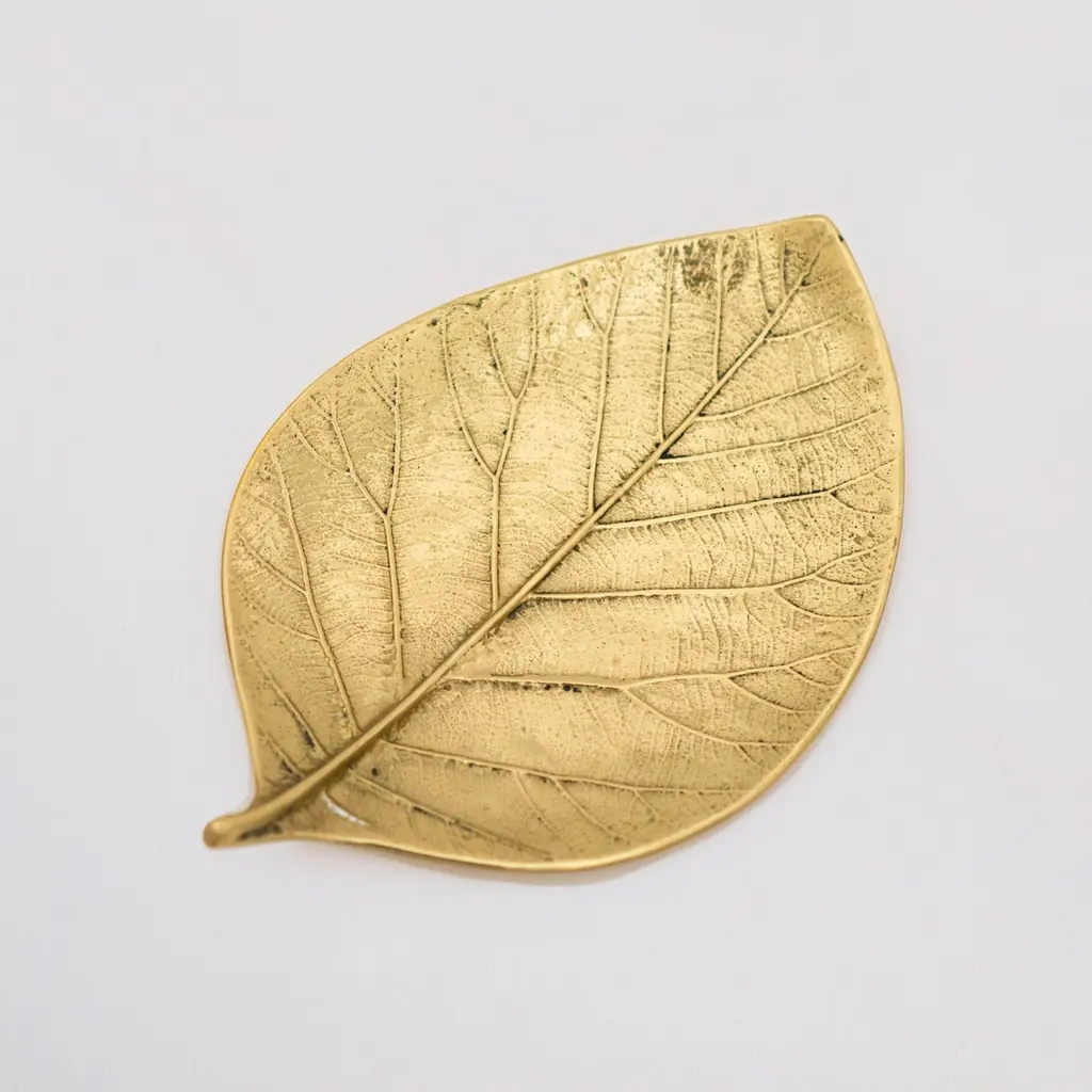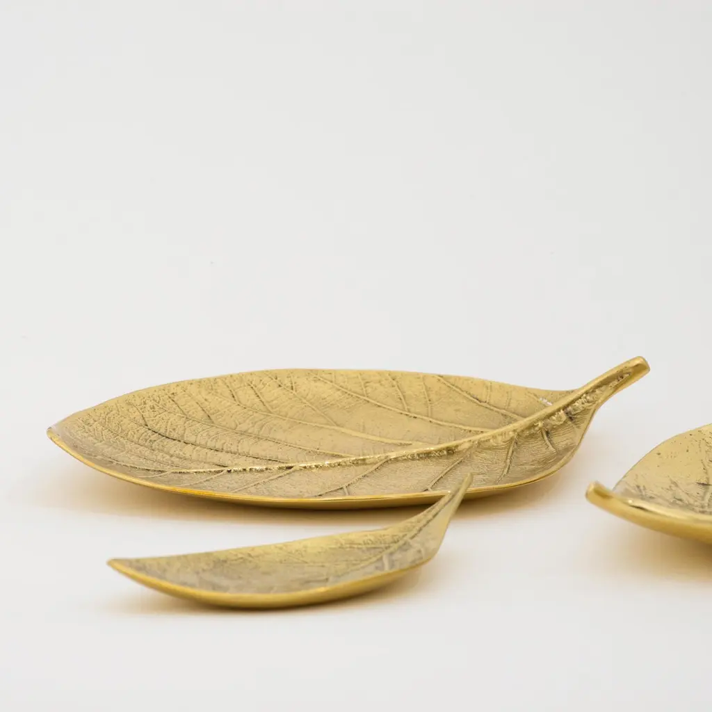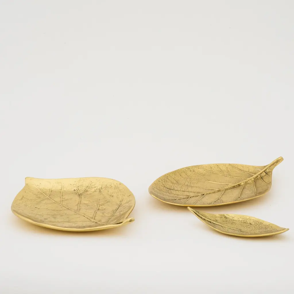 Set Of 3 Handmade Cast Brass Leaves Decorative Dishes, Vide Poches