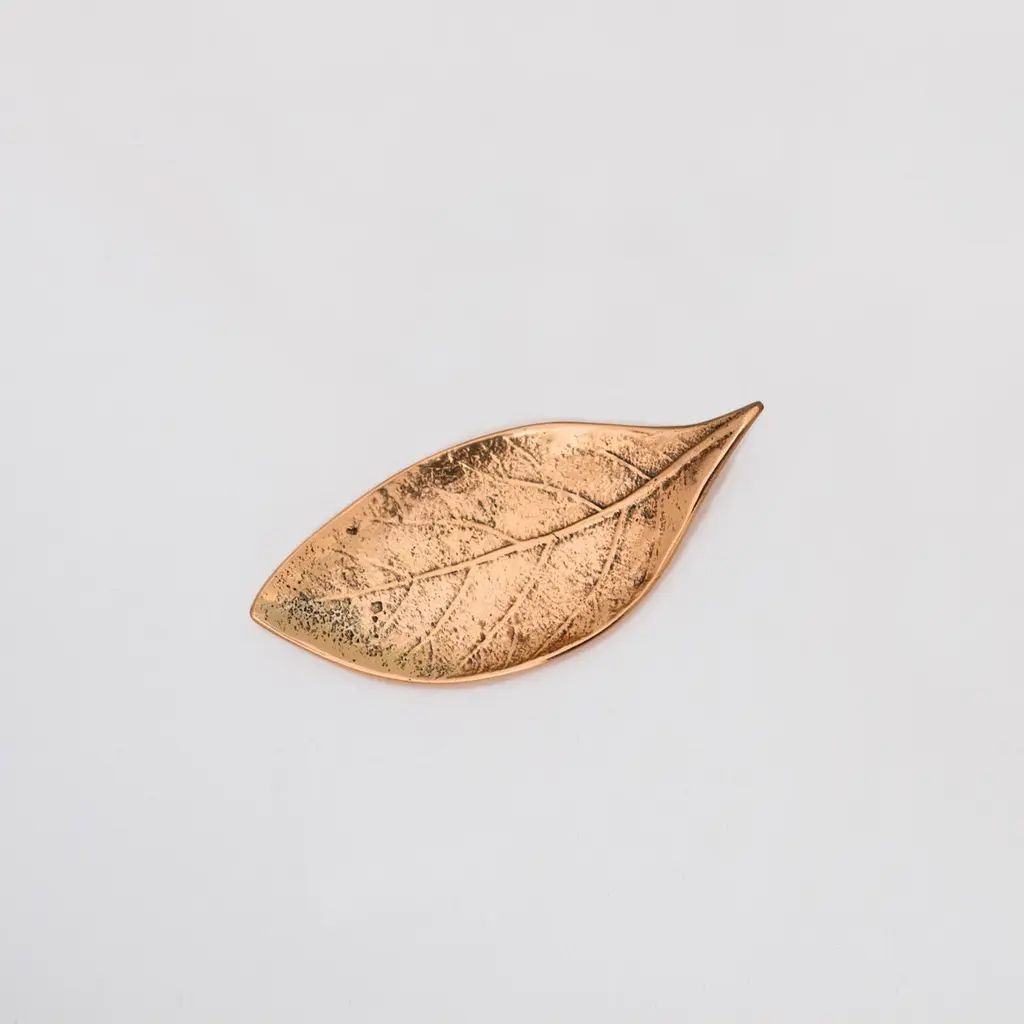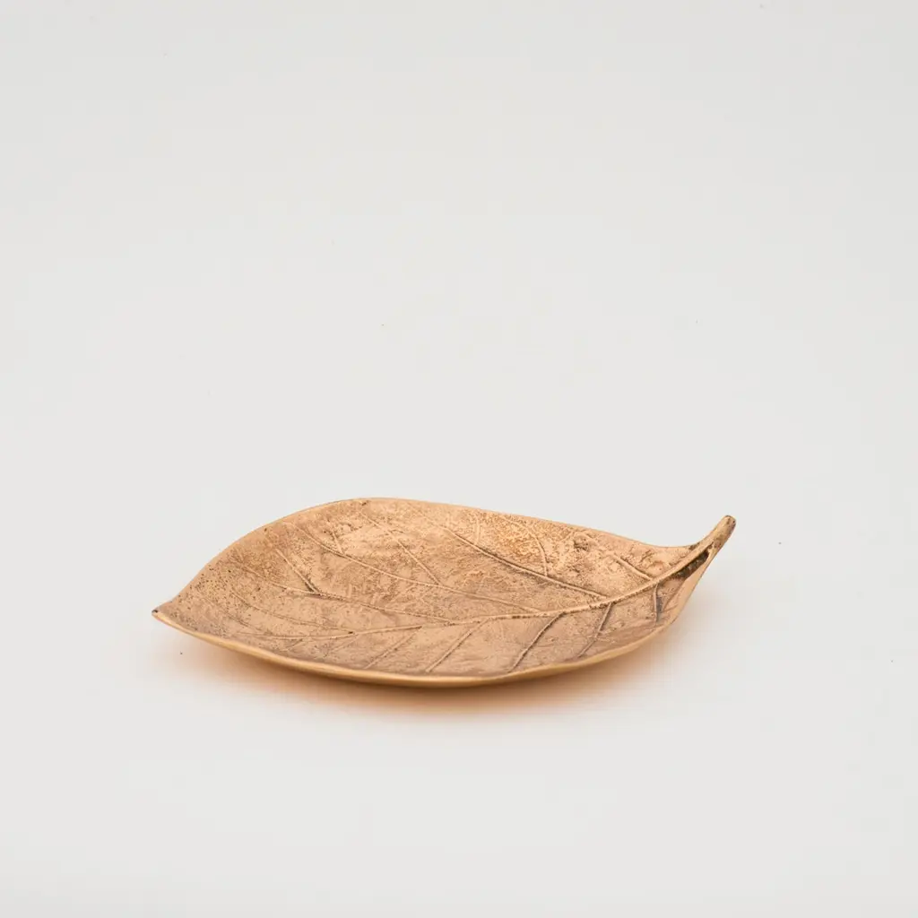 Cluster of bronze leaves. Each of these splendid bronze leaves is handmade individually with incredible detail.Cast using very traditional techniques, they are polished capturing the raw finish of this noble material, and impressively highlighting every vein and detail.Used as candle holders, or simply as very beautiful decorative objects.Slight variations in the patina and polished finishes, patterns and sizes are characteristics of such original handmade creations. These characteristics enhance the beauty of the product and make each piece unique.Size A: H 3 cm x W 15 cm x D 20 cm / H 1.19 in x W 5.91 in x 7.88 inSize B: H 3.8 cm x W 10.5 cm x D 18.5 cm / H 1.5 in x W 4.14 in x 7.29 inSize C: H 2.5 cm x W 6 cm x D 12.5 cm / H 0.99 in x W 2.37 in x 4.93 inORDERS OF MULTIPLE ACCESSORIES OF THE SAME TYPE: Please contact us to receive a Packing and Shipping quote when ordering multiple accessories of the same type. An order for multiple accessories of the same type may not be accepted without extra packing and shipping fees. Thank you.
