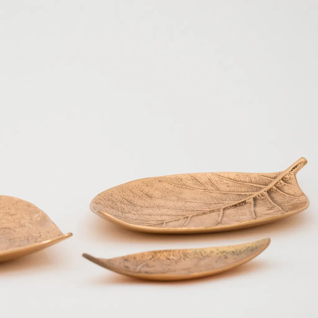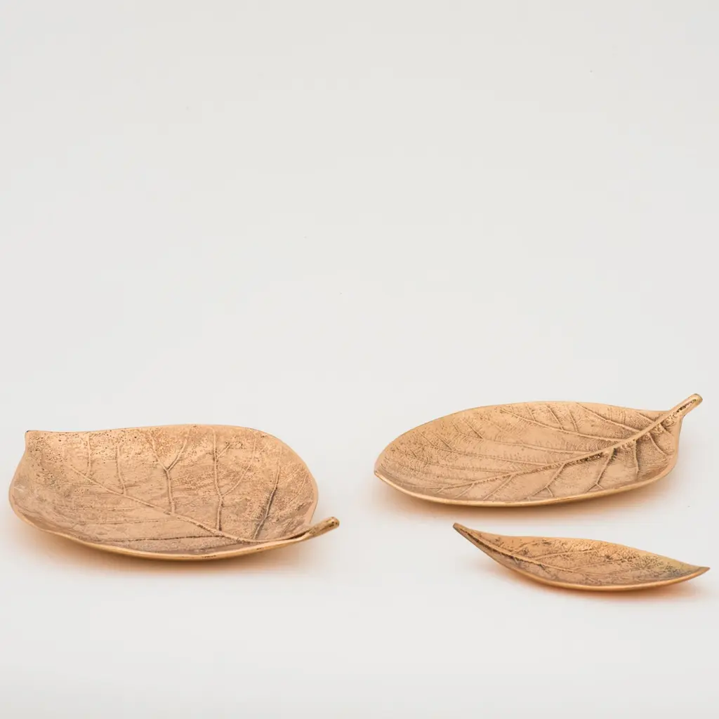 Set Of 3 Handmade Cast Bronze Leaves Decorative Dishes, Vide Poches