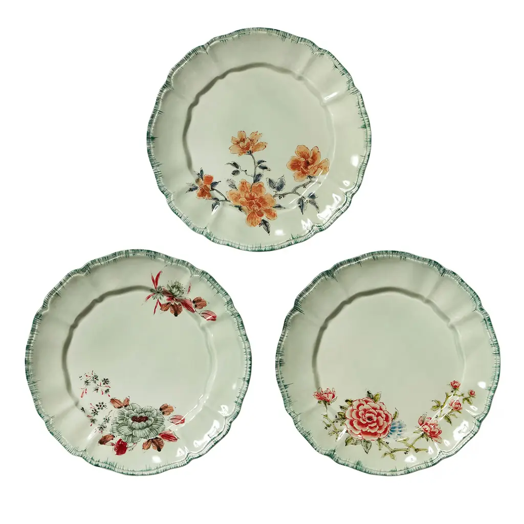Set Of 3 Veranda Turquoise Dessert Plates