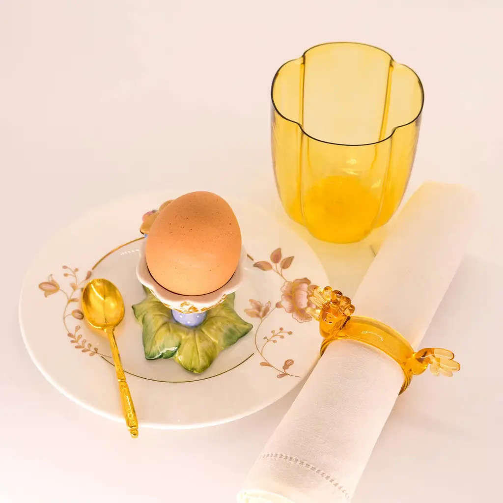 Set of 4 transparent wine glasses with a flower shape and stem, the glass opens like a flower in 4 petals. The glasses are handcrafted in Venice. They're very light in weight, nuance and glass quality, but very resistant. It's possible to wash them in the dishwasher. Also available in other finishes, please contact the Concierge for further options.