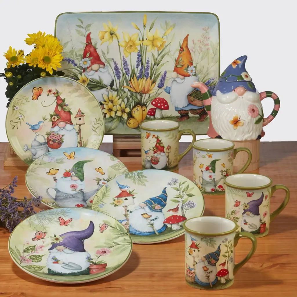 Set Of 4 Garden Gnomes Assorted 18oz Mugs - Certified International