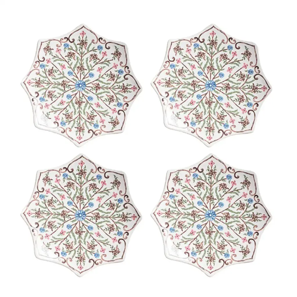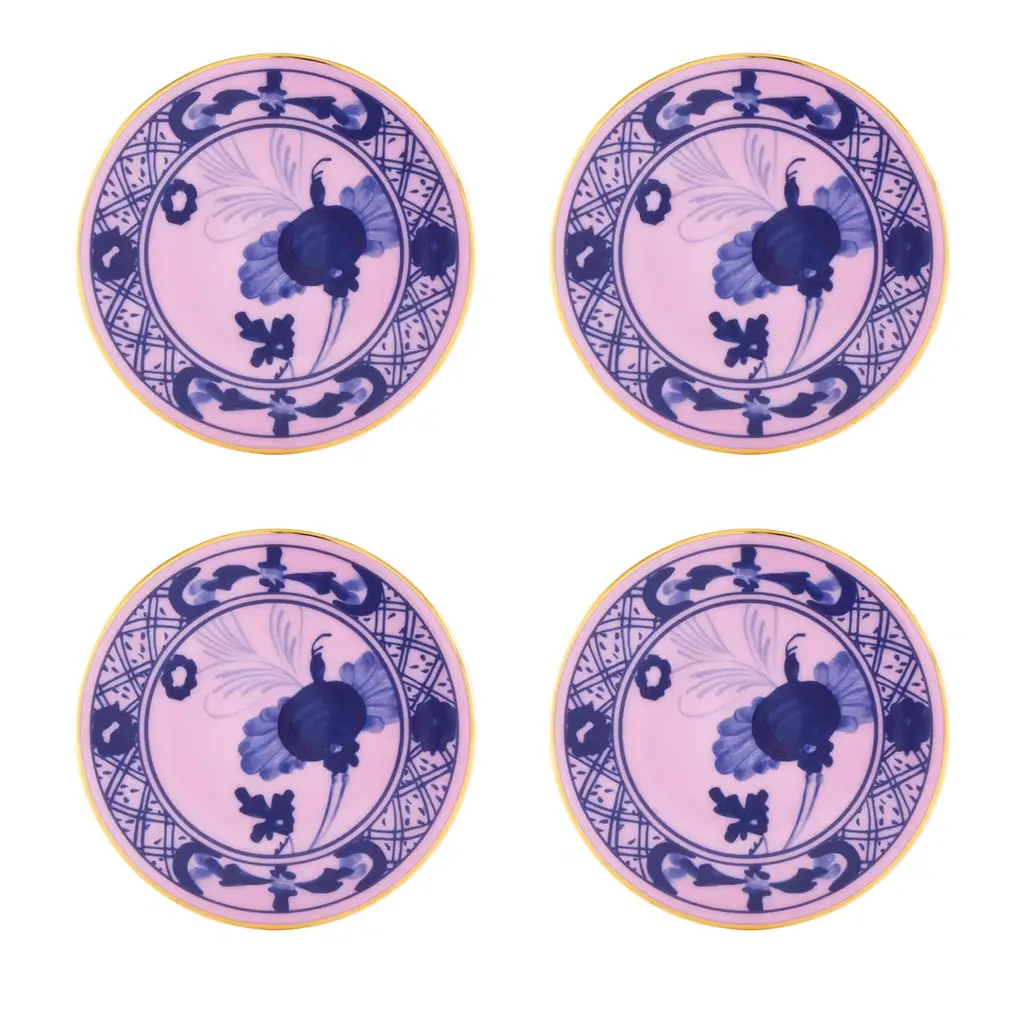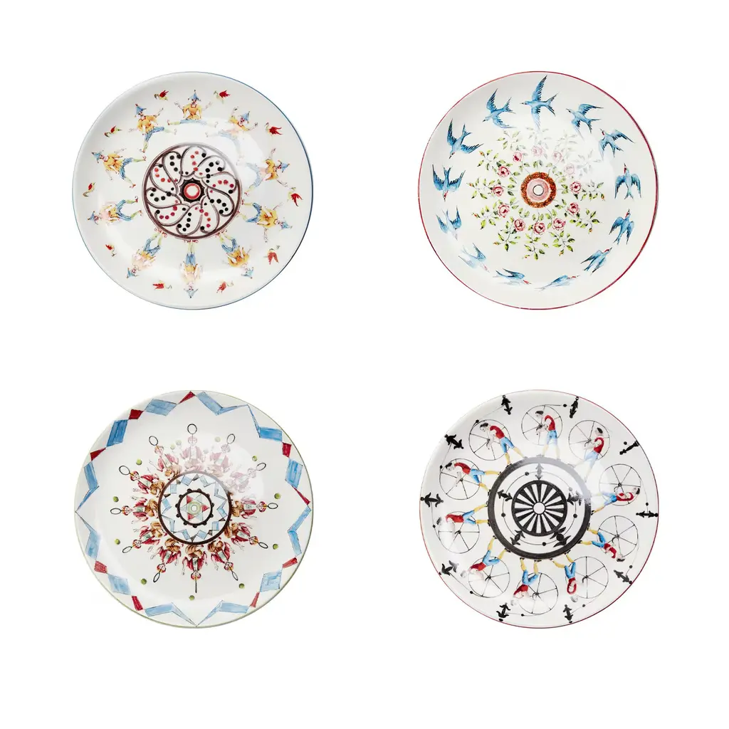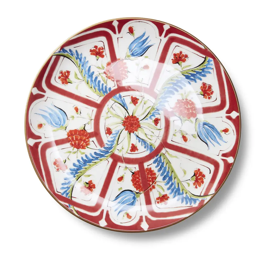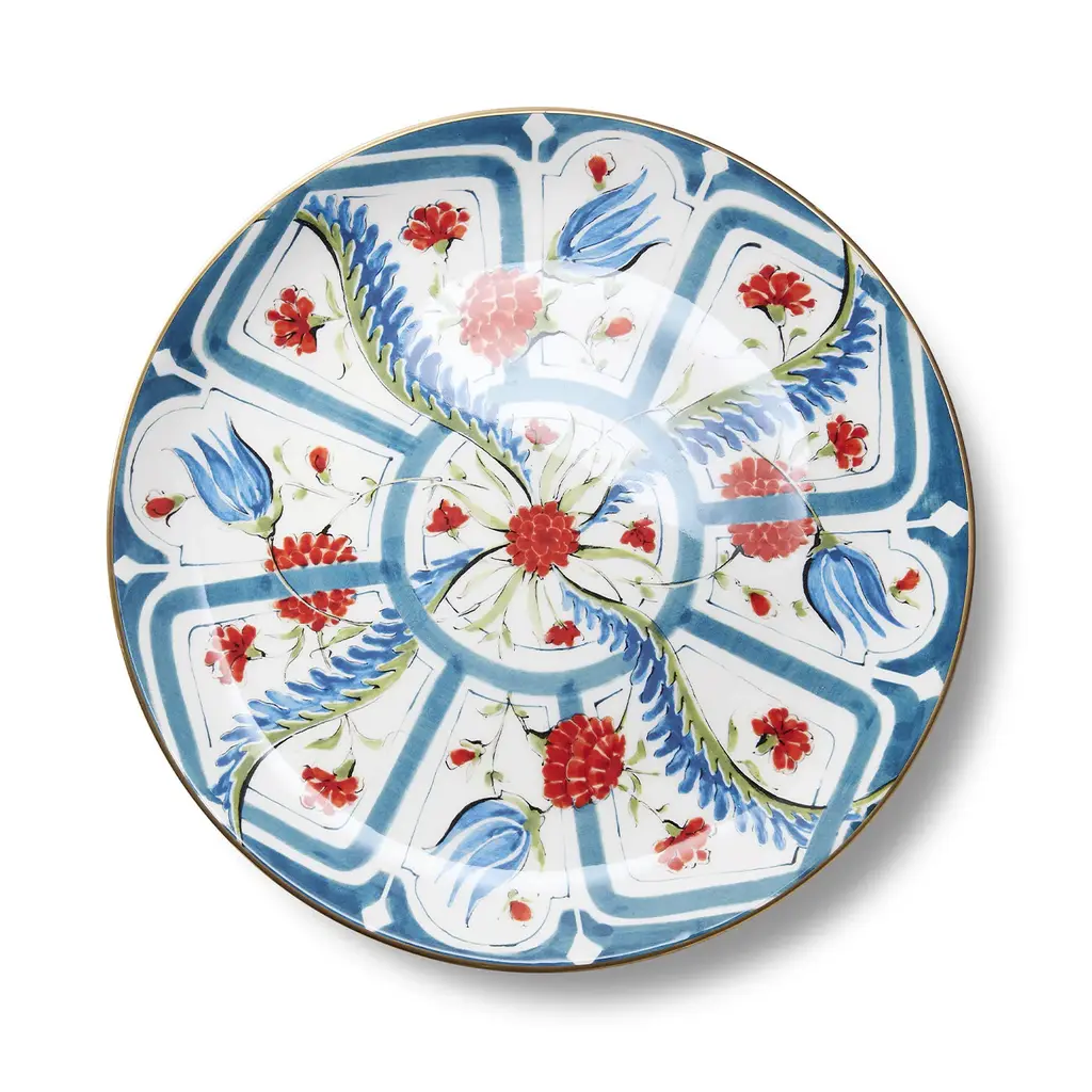 This vibrant series captures the name of the ancient city of Smirne. It reinterprets the typical geometries and elements of the valuable İznik ceramics, which were well-known for their refined underglaze decoration techniques during the Ottoman Empire. This vibrant set is enhanced by the handmade gold rim. A nostalgic journey to the Middle East, a mysterious land in the middle, to reopen a window onto the Mediterranean.