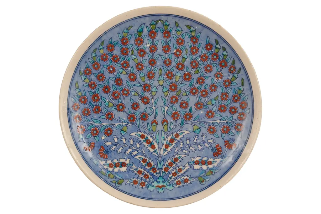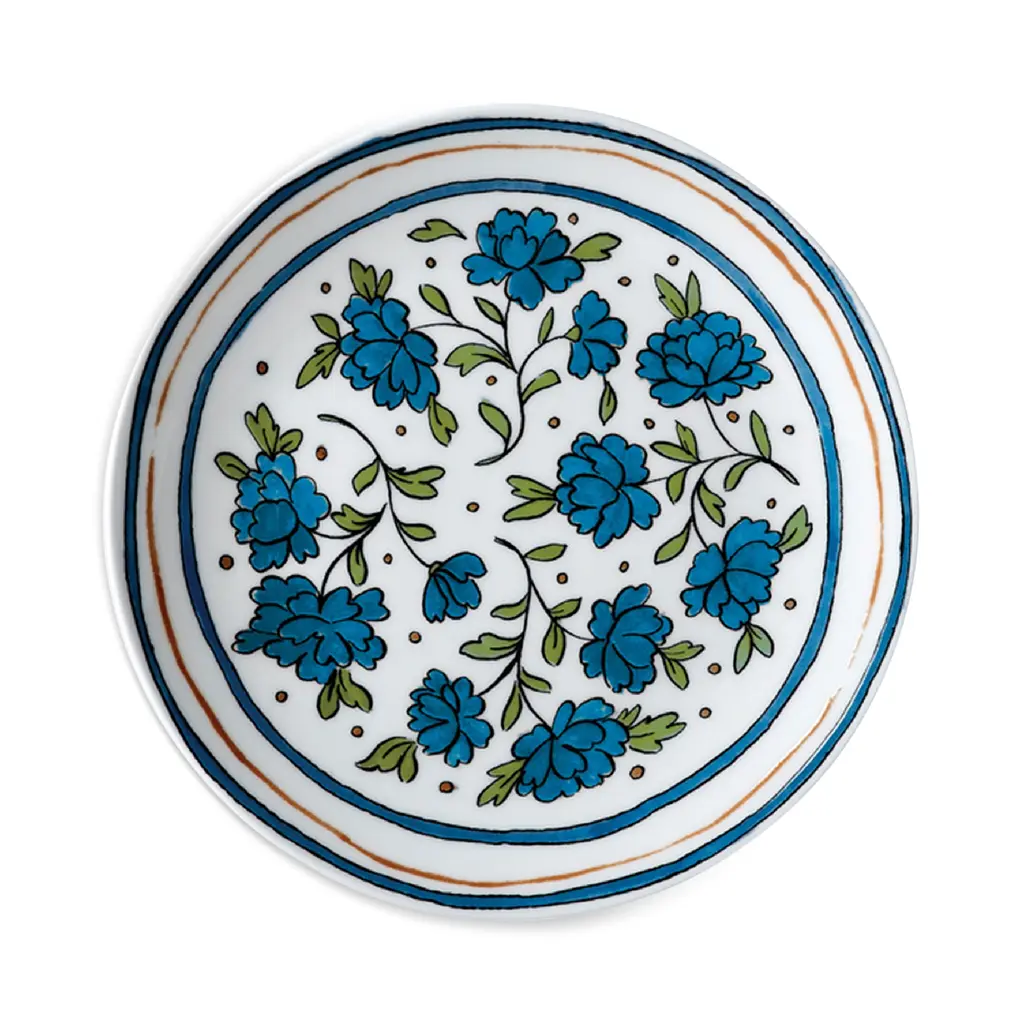 This vibrant series captures the name of the ancient city of Smirne. It reinterprets the typical geometries and elements of the valuable İznik ceramics, which were well-known for their refined underglaze decoration techniques during the Ottoman Empire. This vibrant set is enhanced by the handmade gold rim. A nostalgic journey to the Middle East, a mysterious land in the middle, to reopen a window onto the Mediterranean.