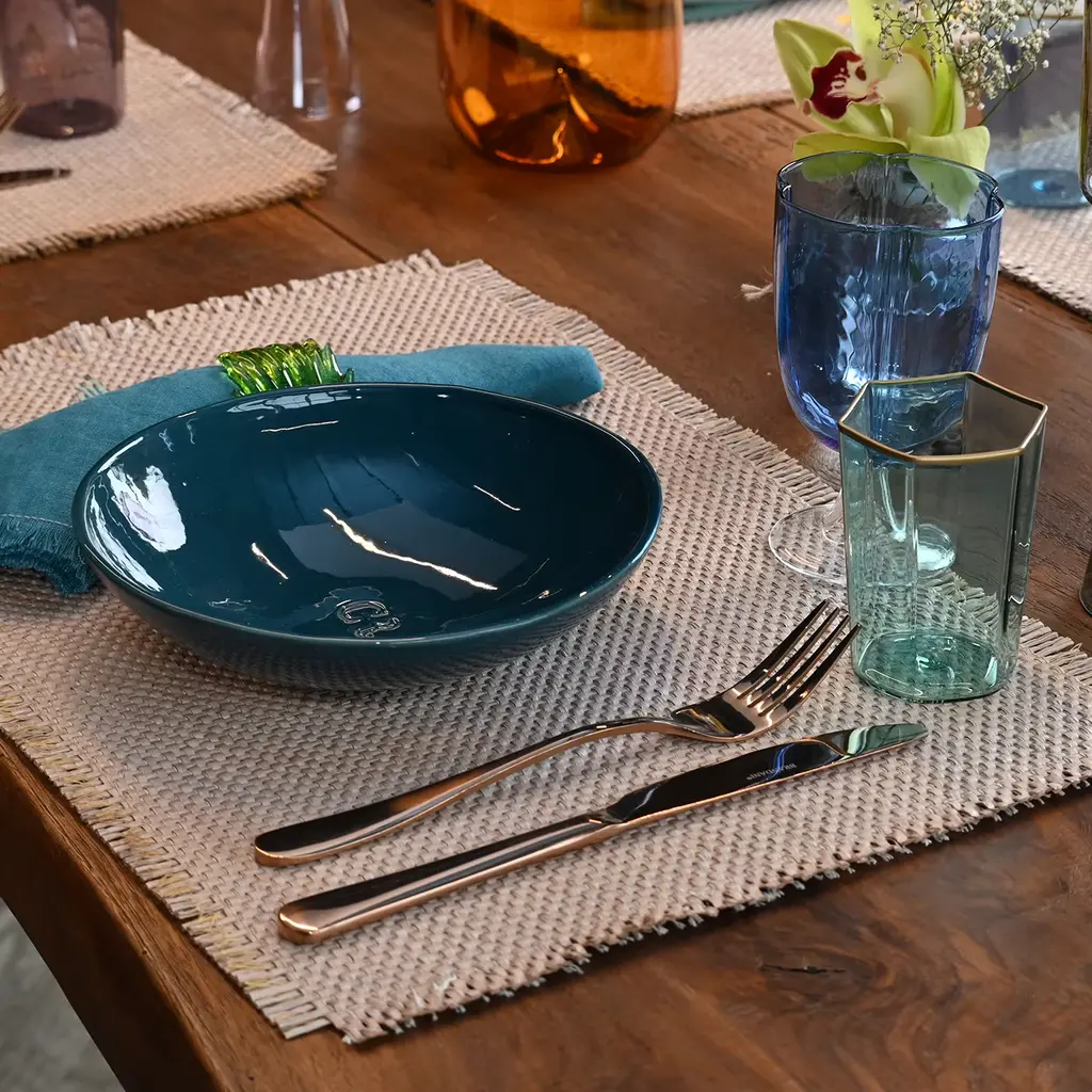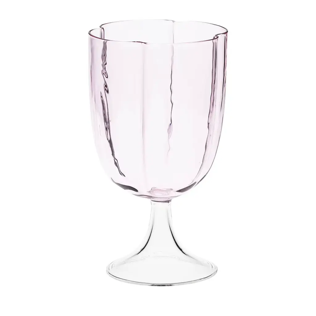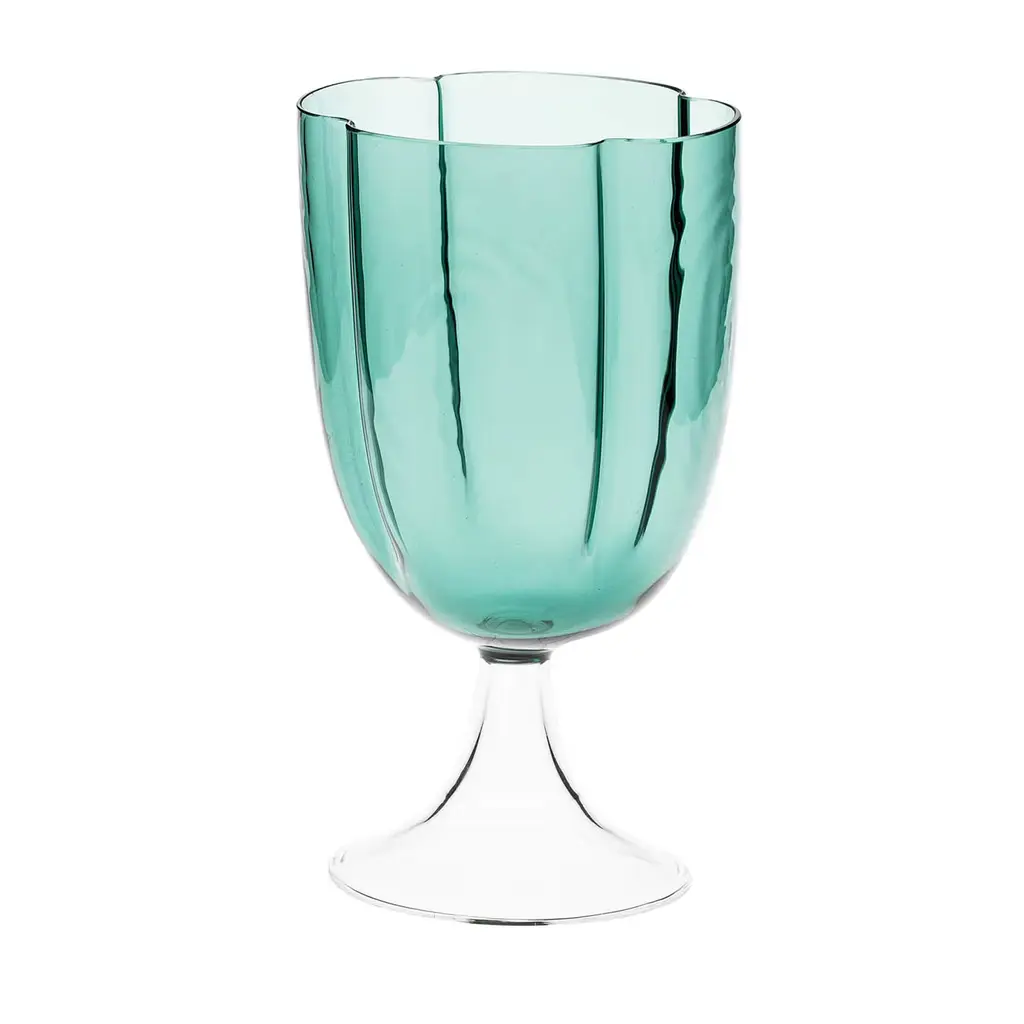 Set of 4 transparent wine glasses with a flower shape and stem, the glass opens like a flower in 4 petals. The glasses are handcrafted in Venice. They're very light in weight, nuance and glass quality, but very resistant. It's possible to wash them in the dishwasher. Also available in other finishes, please contact the Concierge for further options.