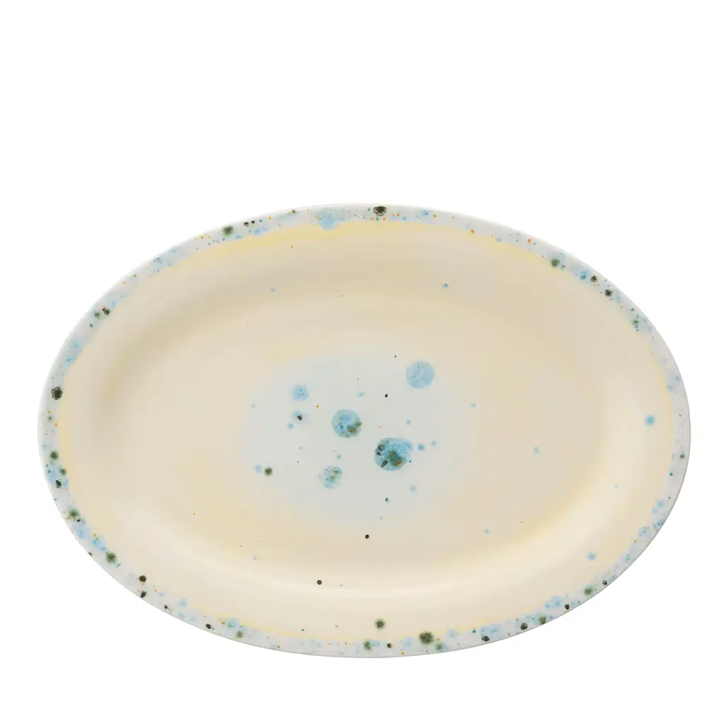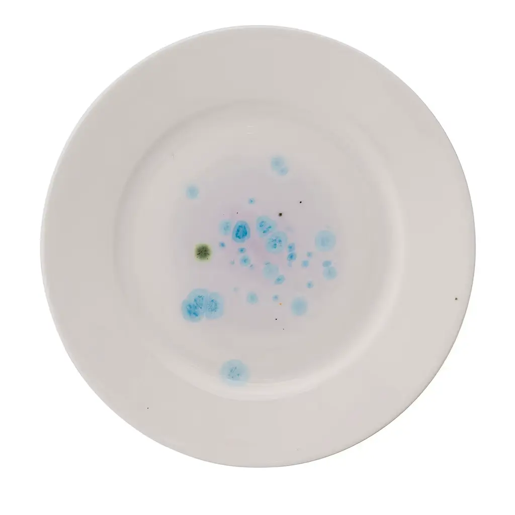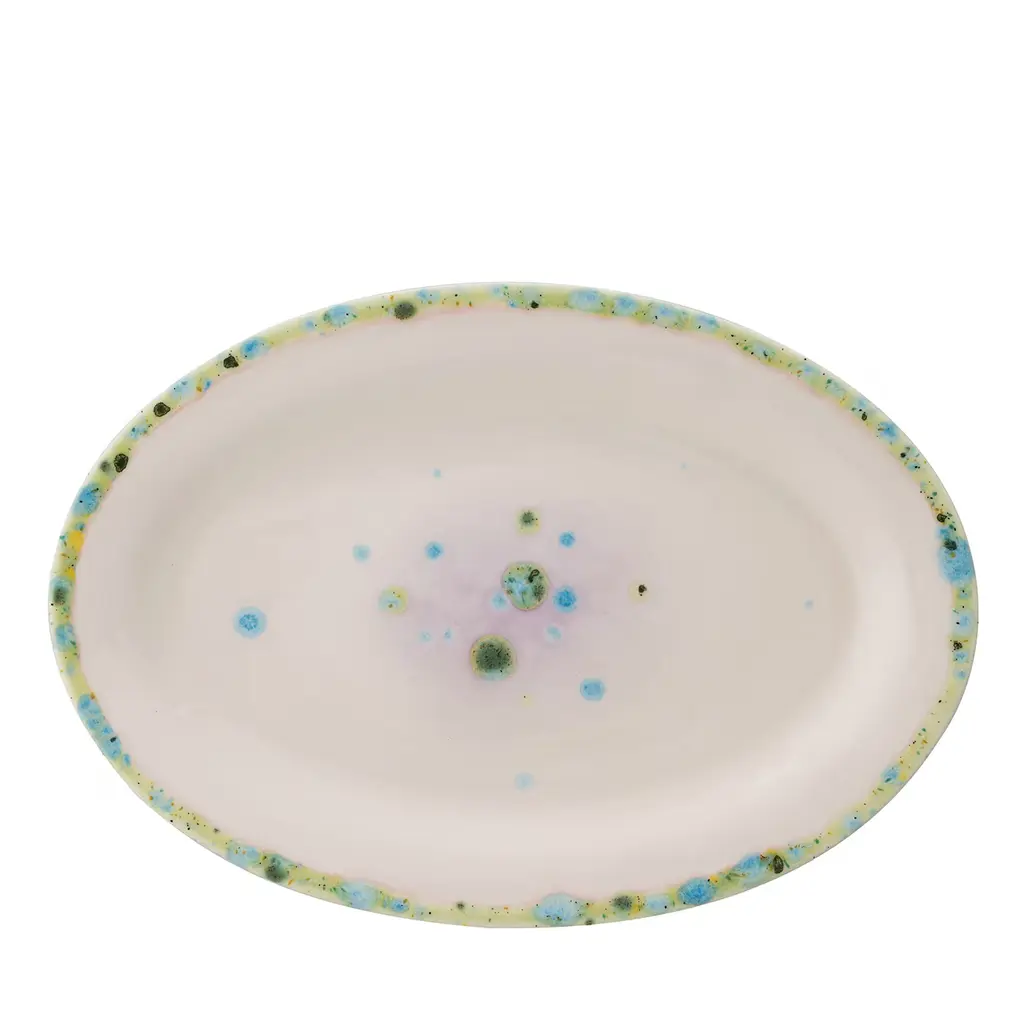 The Murrine Bread Plate beautifully captures the essence of Venetian glass artistry, inspired by vibrant, colorful kaleidoscopes. Its refreshing green hue adds a touch of nature to your table, evoking the joy of spring. The plate features Murrine patterns that elegantly open and disperse along the edges, reminiscent of colorful flower seeds scattering in the wind. Part of a collection that includes yellow, lilac, and grey.