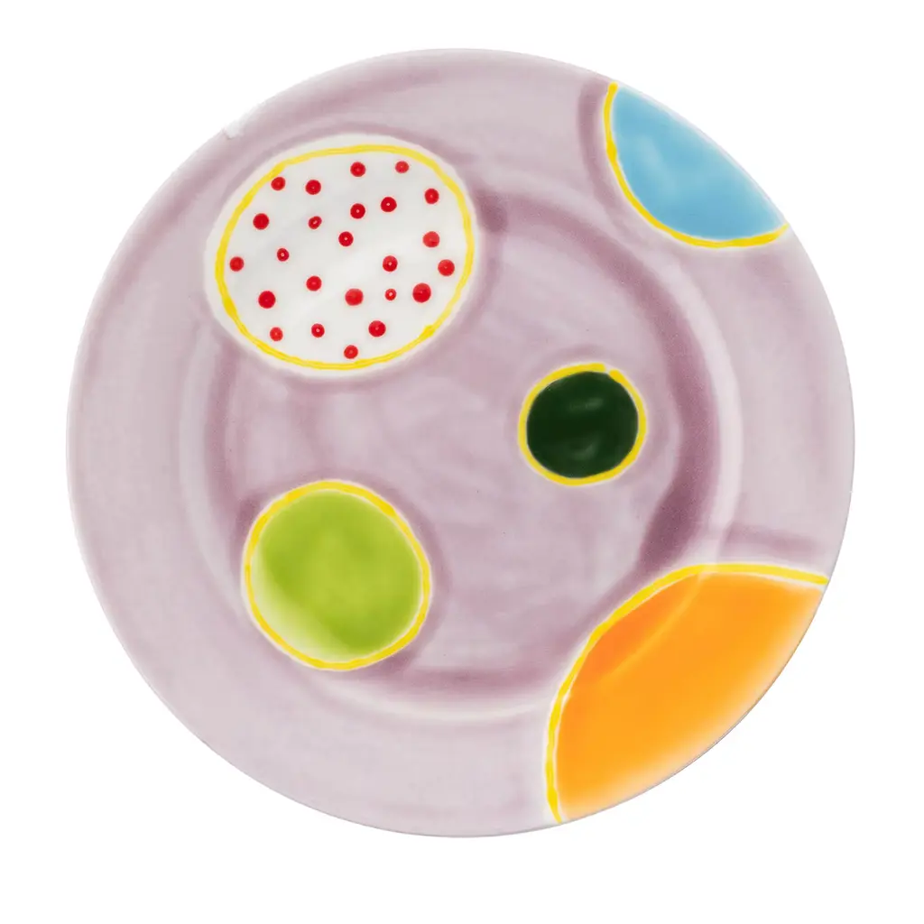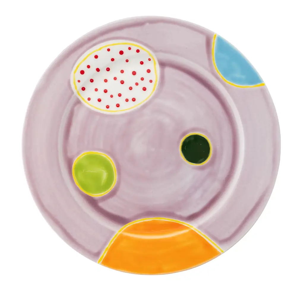 The Plum Bread Plate from the Impressions collection embodies Coralla's exploration of geometry and minimalism, offering a fresh perspective compared to her earlier works. This elegant plate features distinct shapes and symbols, such as the iconic Mountain, which serve as gateways to life's profound mysteries. Each design reflects a harmonious blend of art and order, showcasing Coralla's vision of structured beauty. The rich plum hue adds warmth and sophistication.